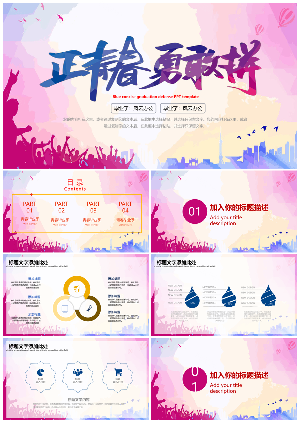 风云办公提供的蓝色时尚炫彩青春毕业季PPT模板,下载格式为pptx,一共17页,作品中文字及图均可以修改和编辑,图片更改请在作品中右键图片并更换,文字修改请直接点击文字进行修改。