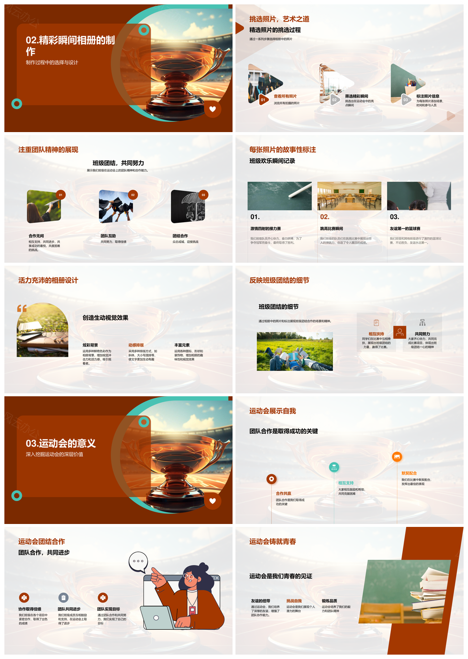 风云办公提供的班级运动会相册定格青春跑道团队瞬间PPT模板,下载格式为pptx,一共29页,作品中文字及图均可以修改和编辑,图片更改请在作品中右键图片并更换,文字修改请直接点击文字进行修改。