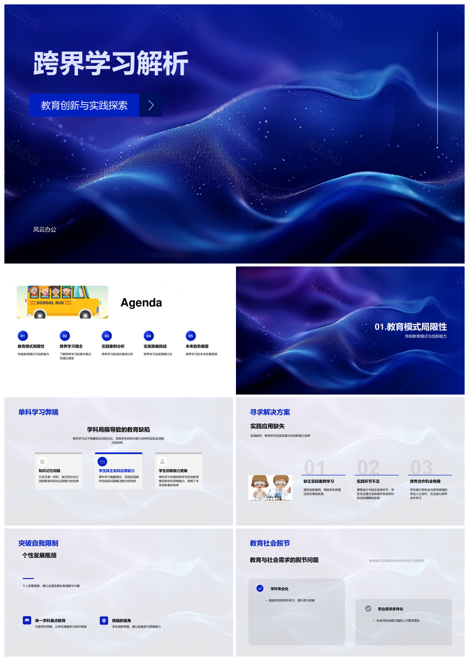 风云办公提供的跨界学习教育创新学科融合课程设计PPT模板,下载格式为pptx,一共28页,作品中文字及图均可以修改和编辑,图片更改请在作品中右键图片并更换,文字修改请直接点击文字进行修改。