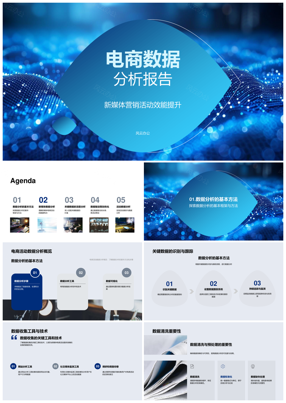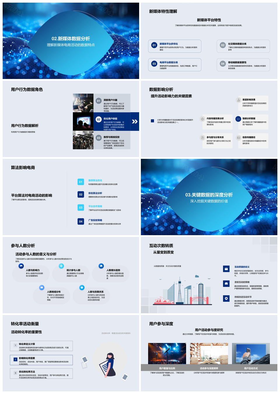 电商新媒体活动数据清洗转化多平台分析报告PPT模板推荐