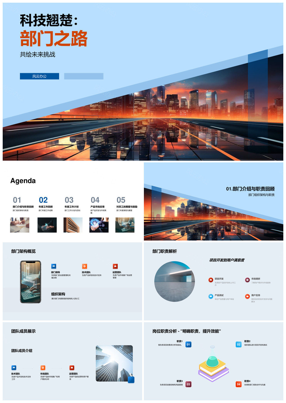 科技翘楚部门架构职责年度开发推广质量未来城市PPT模板推荐