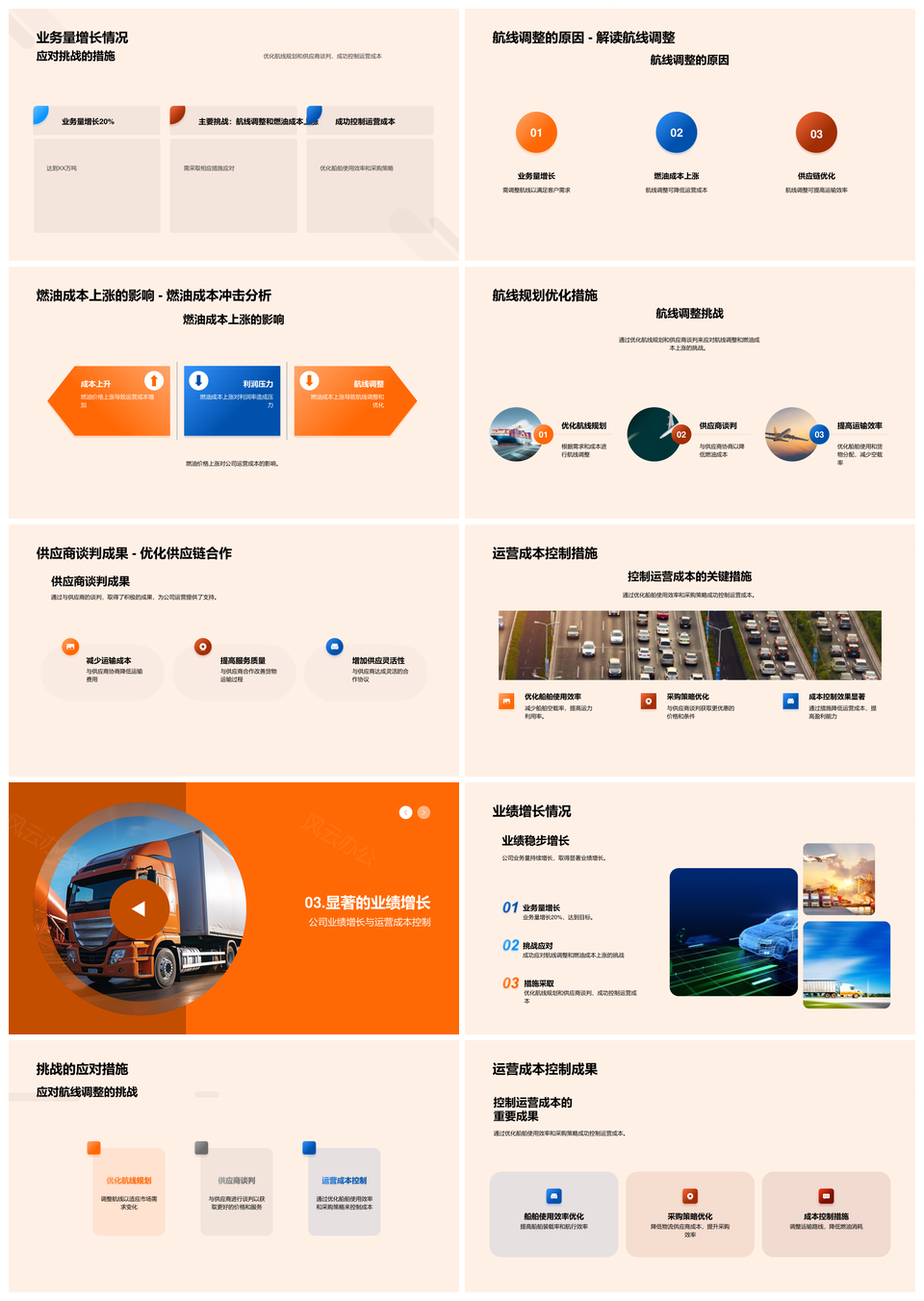 物流公司业务增长挑战下调整航线应对燃油成本PPT模板推荐