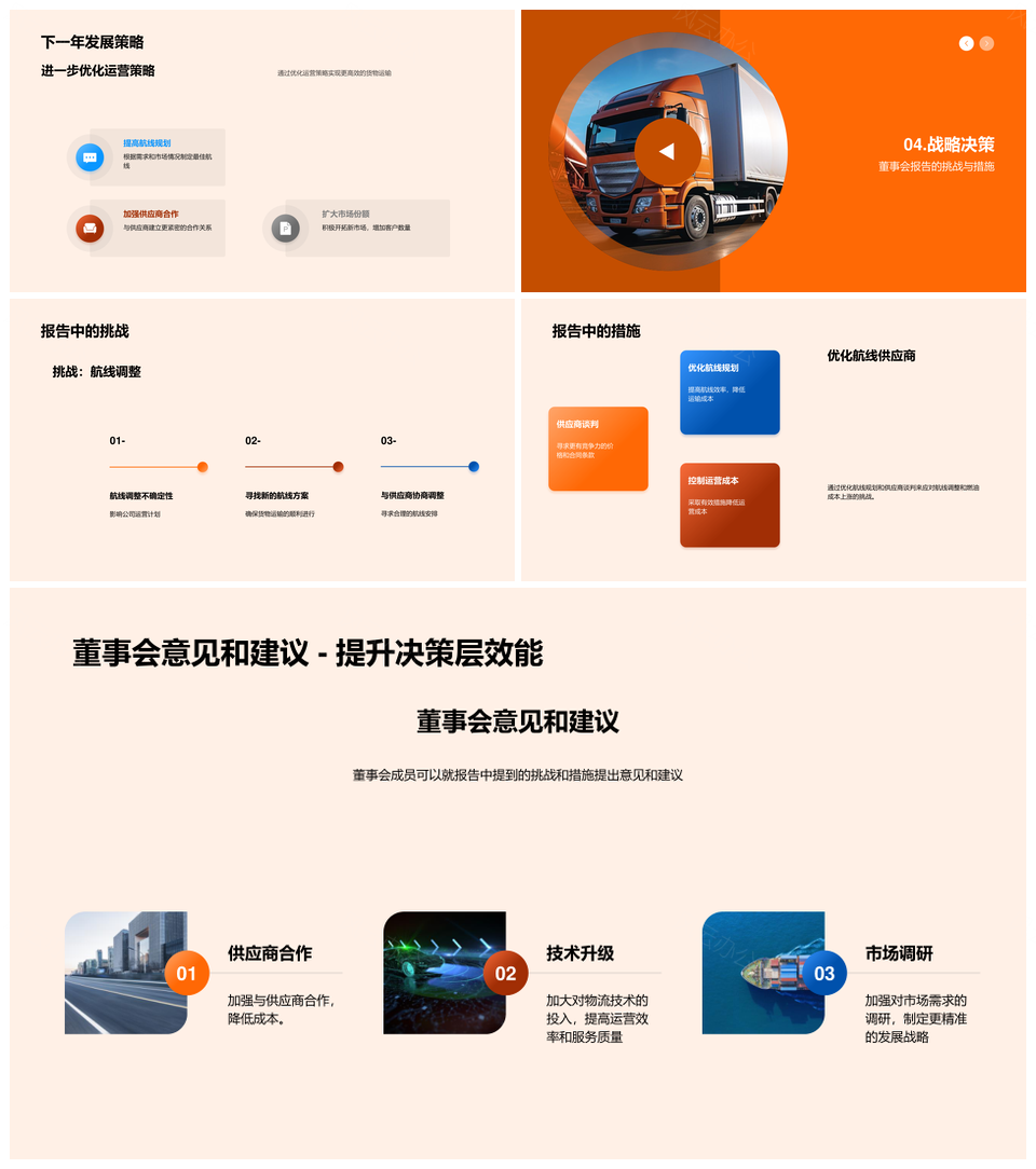 这是一张物流公司业务增长挑战下调整航线应对燃油成本PPT模板,包含物流公司、业务增长、挑战、调整、航线、应对、燃油成本等主题内容,也可用作物流公司业务增长挑战下调整航线应对燃油成本、物流公司业务增长调整航线应对、业务增长挑战调整航线应对、物流公司调整航线应对燃油、挑战下调整航线燃油成本、物流公司应对燃油成本增长、业务增长挑战应对燃油成本、调整航线应对燃油成本、物流公司业务增长调整航线、挑战调整航线应对成本、业务增长应对燃油成本、物流公司挑战调整航线、增长挑战应对燃油、物流公司航线应对成本、业务调整航线燃油成本等PPT场景使用。 风云办公提供的物流公司业务增长挑战下调整航线应对燃油成本PPT模板,下载格式为pptx,一共23页,作品中文字及图均可以修改和编辑,图片更改请在作品中右键图片并更换,文字修改请直接点击文字进行修改。