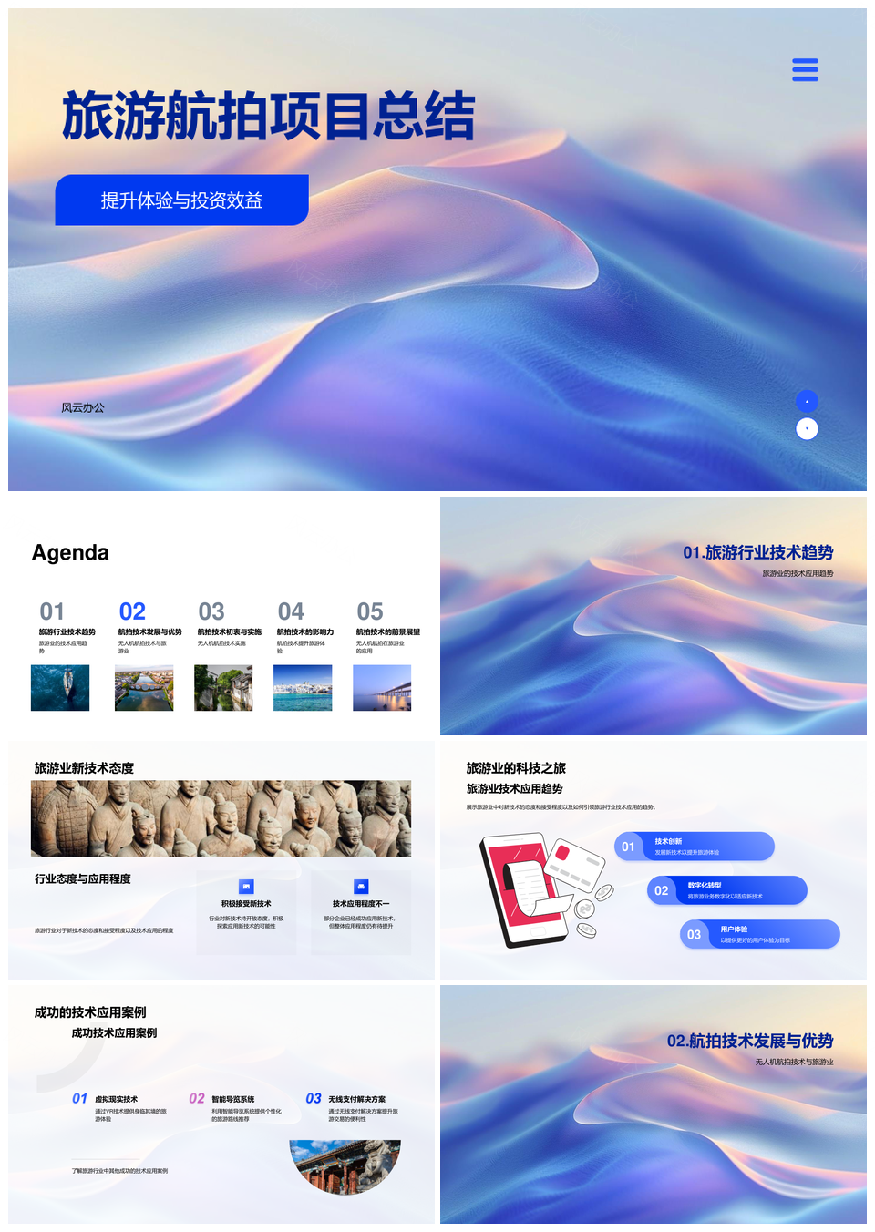 这是一张旅游航拍项目无人机技术效益体验创新总结PPT模板,包含旅游、航拍、项目、无人机、技术、效益、体验、创新、总结等主题内容,也可用作旅游航拍项目无人机、航拍项目无人机技术、项目无人机技术效益、无人机技术效益体验、技术效益体验创新、效益体验创新总结、旅游航拍项目技术、旅游航拍项目效益、航拍项目技术效益、航拍项目效益体验、项目技术效益体验、项目效益体验创新、技术效益体验总结、旅游航拍效益体验、旅游项目无人机技术等PPT场景使用。 风云办公提供的旅游航拍项目无人机技术效益体验创新总结PPT模板,下载格式为pptx,一共23页,作品中文字及图均可以修改和编辑,图片更改请在作品中右键图片并更换,文字修改请直接点击文字进行修改。