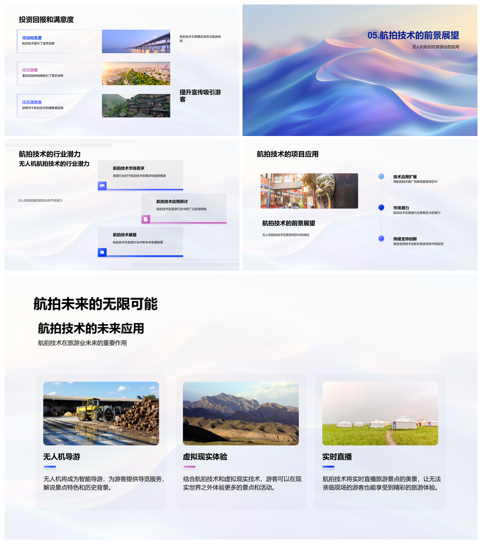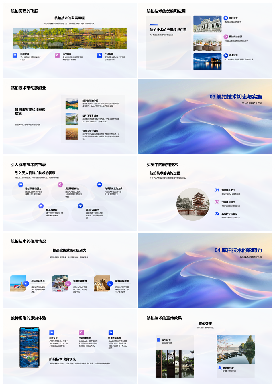 旅游航拍项目无人机技术效益体验创新总结PPT模板