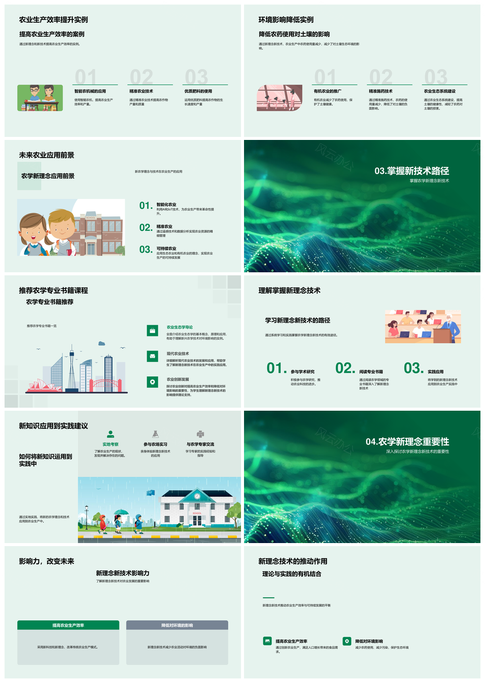 风云办公提供的农学新技术提升效率环保应用前景PPT模板,下载格式为pptx,一共23页,作品中文字及图均可以修改和编辑,图片更改请在作品中右键图片并更换,文字修改请直接点击文字进行修改。