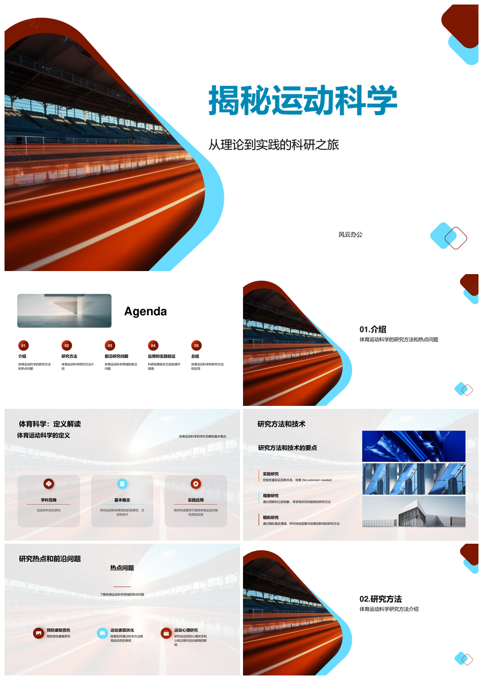 风云办公提供的运动科学研究方法与技术热点探析PPT模板,下载格式为pptx,一共23页,作品中文字及图均可以修改和编辑,图片更改请在作品中右键图片并更换,文字修改请直接点击文字进行修改。