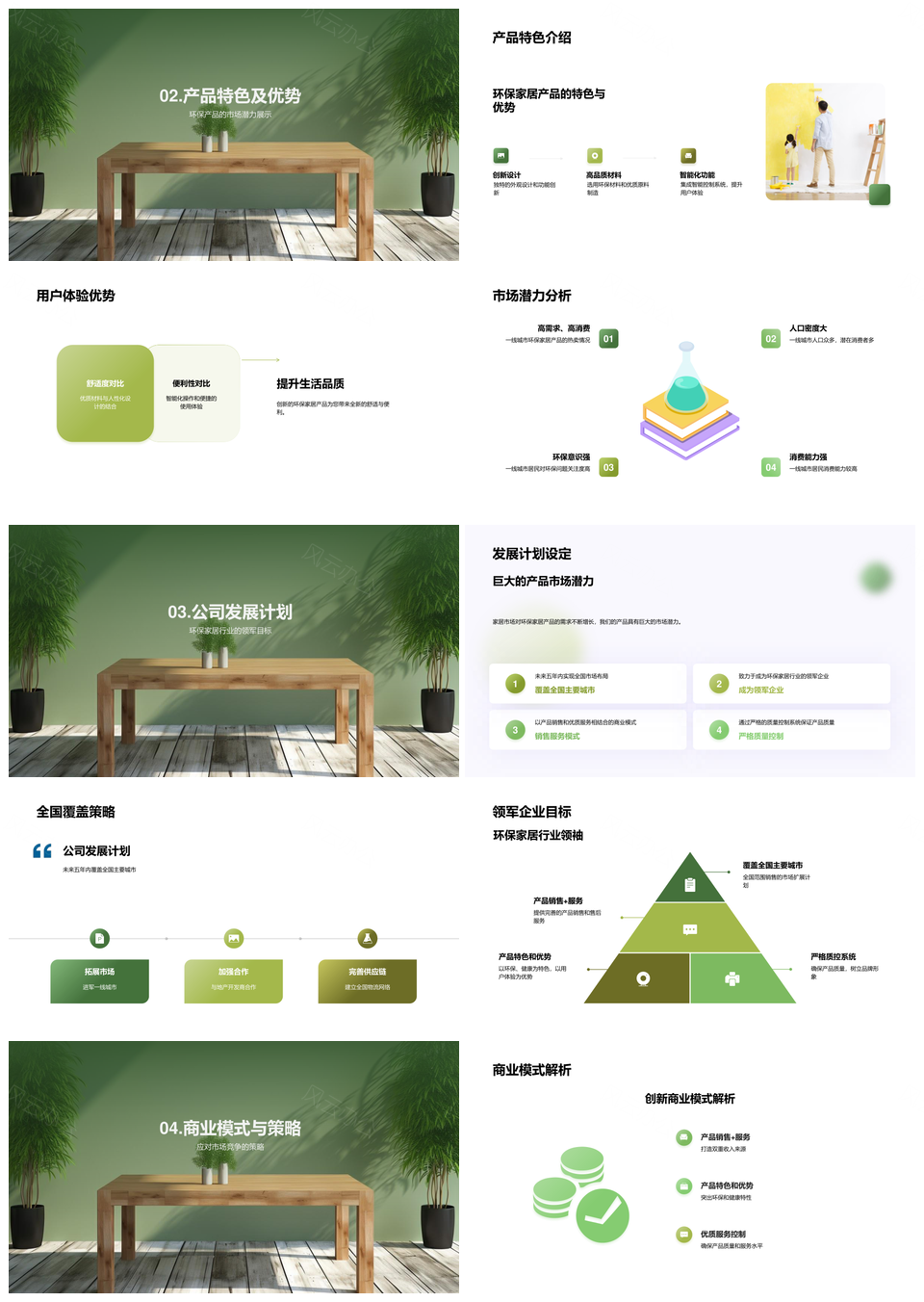 风云办公提供的绿色居家环保家具新世代全国覆盖发展PPT模板,下载格式为pptx,一共24页,作品中文字及图均可以修改和编辑,图片更改请在作品中右键图片并更换,文字修改请直接点击文字进行修改。