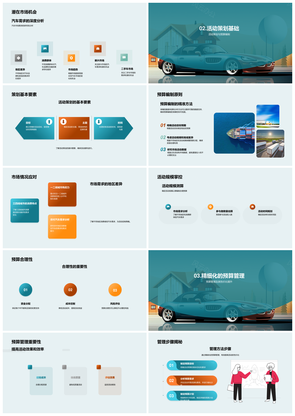 这是一张汽车行业预算管理活动策划与数据驱动防控超支PPT模板,包含汽车行业、预算管理、活动策划、数据驱动、防控超支等主题内容,也可用作汽车行业预算管理活动策划、预算管理活动策划数据驱动、活动策划数据驱动防控超支、汽车行业预算管理、预算管理活动策划、活动策划数据驱动、数据驱动防控超支、汽车行业活动策划、汽车行业数据驱动、汽车行业防控超支、预算管理数据驱动、预算管理防控超支、活动策划防控超支、数据驱动防控超支、数据驱动防控超支等PPT场景使用。 风云办公提供的汽车行业预算管理活动策划与数据驱动防控超支PPT模板,下载格式为pptx,一共30页,作品中文字及图均可以修改和编辑,图片更改请在作品中右键图片并更换,文字修改请直接点击文字进行修改。