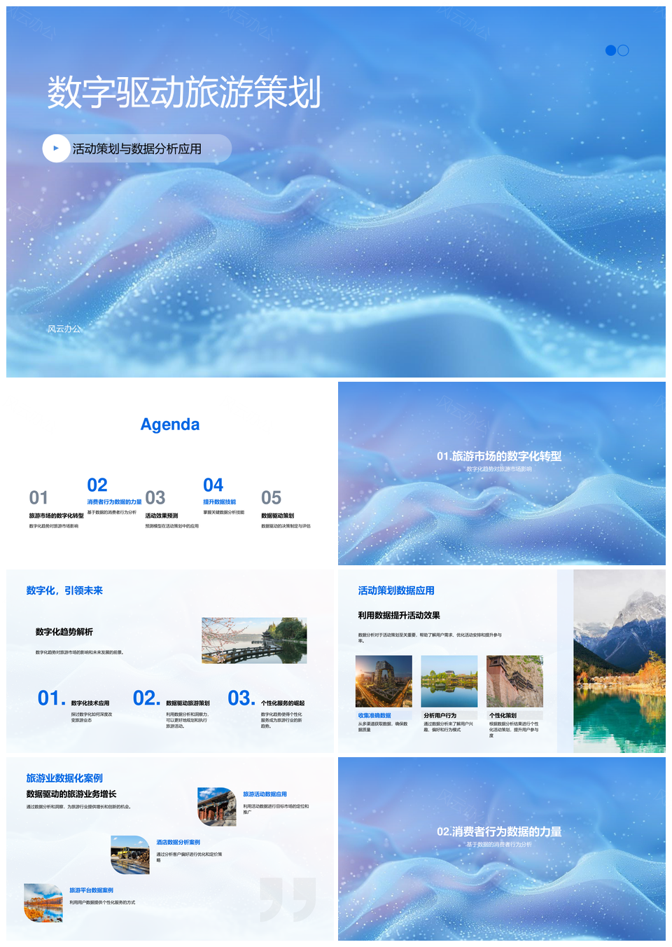 风云办公提供的数字驱动旅游市场预测策划PPT模板,下载格式为pptx,一共23页,作品中文字及图均可以修改和编辑,图片更改请在作品中右键图片并更换,文字修改请直接点击文字进行修改。