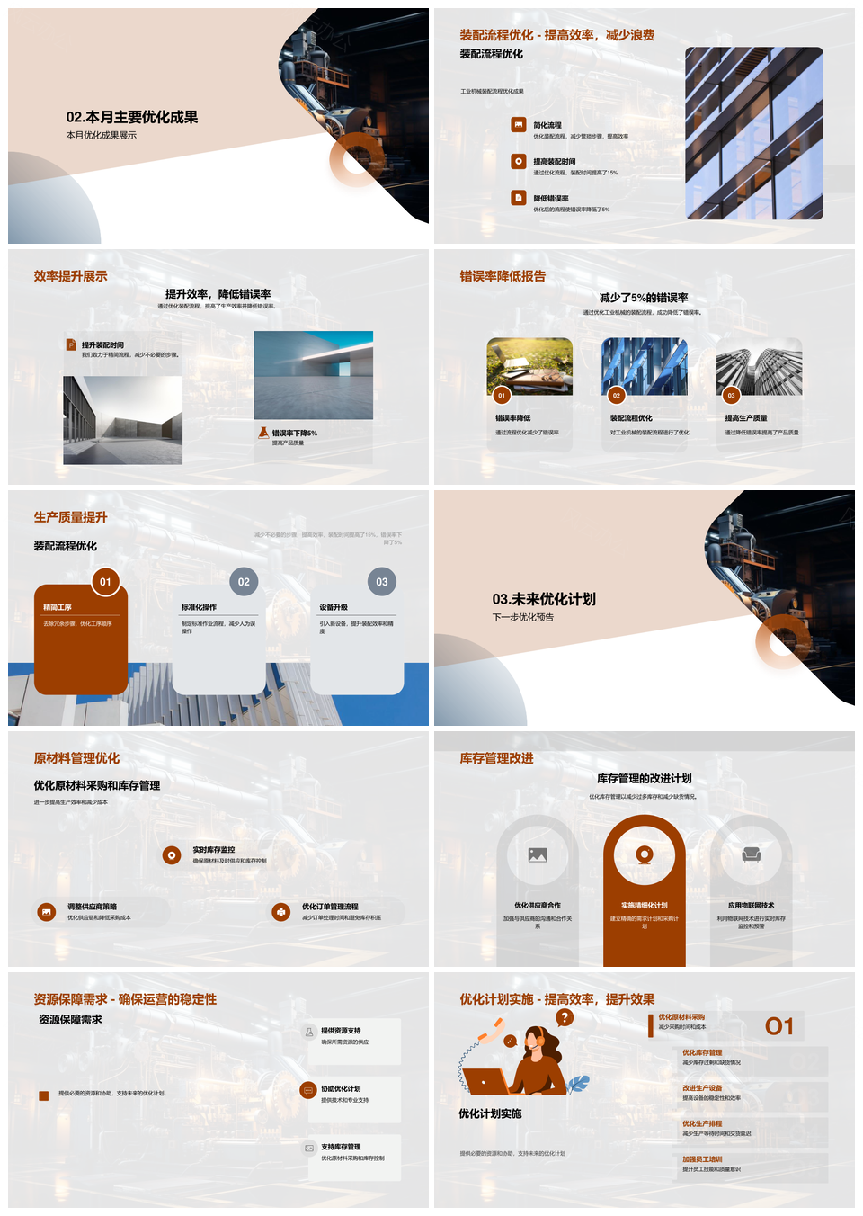 工业机械装配流程优化增效降错库存管理PPT模板推荐