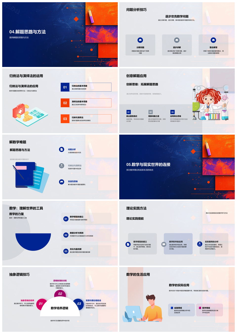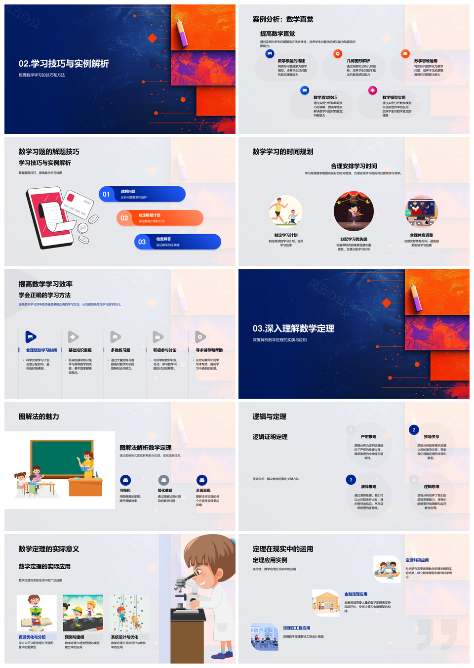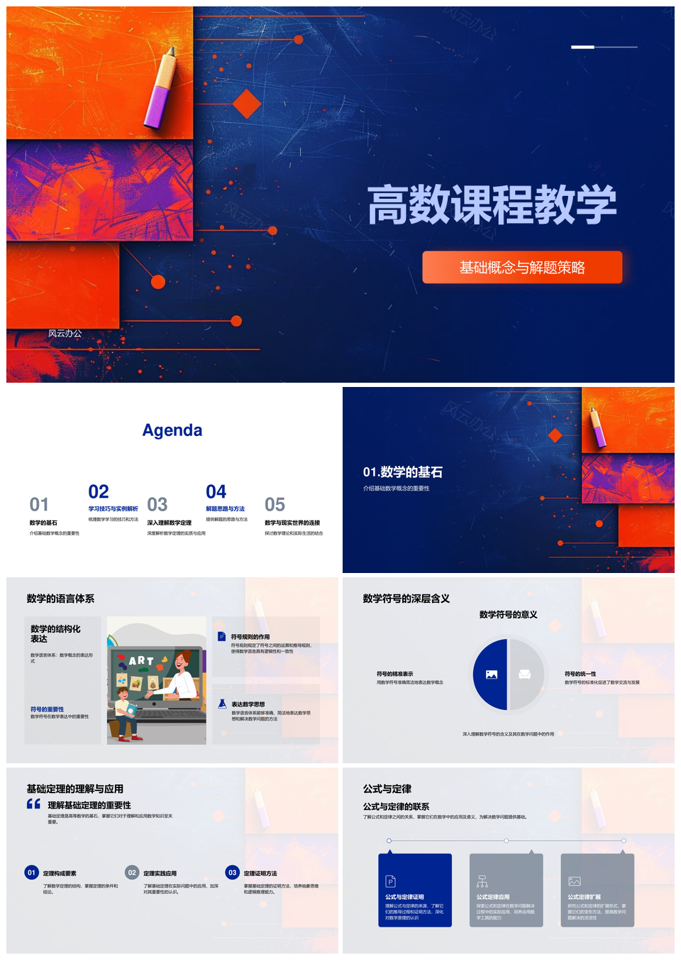 高等数学基础概念解题策略定理图解学习技巧PPT模板推荐