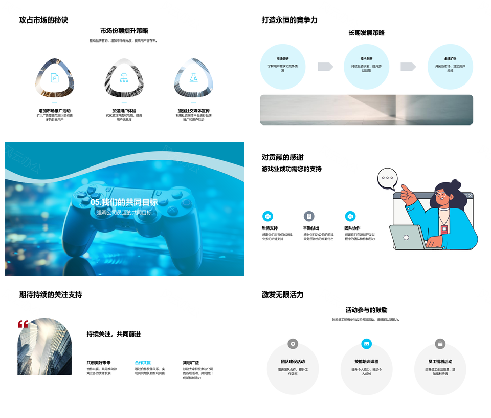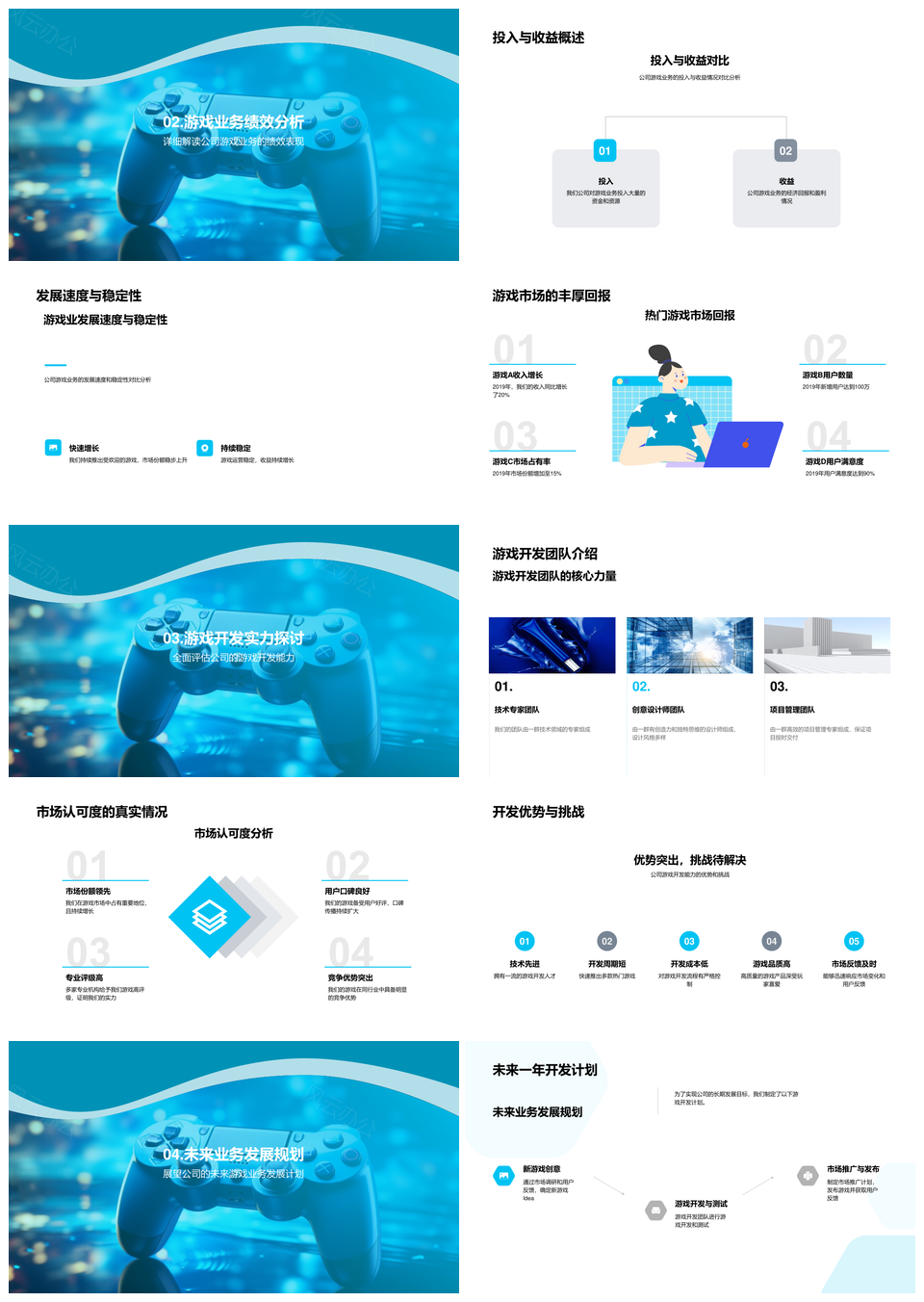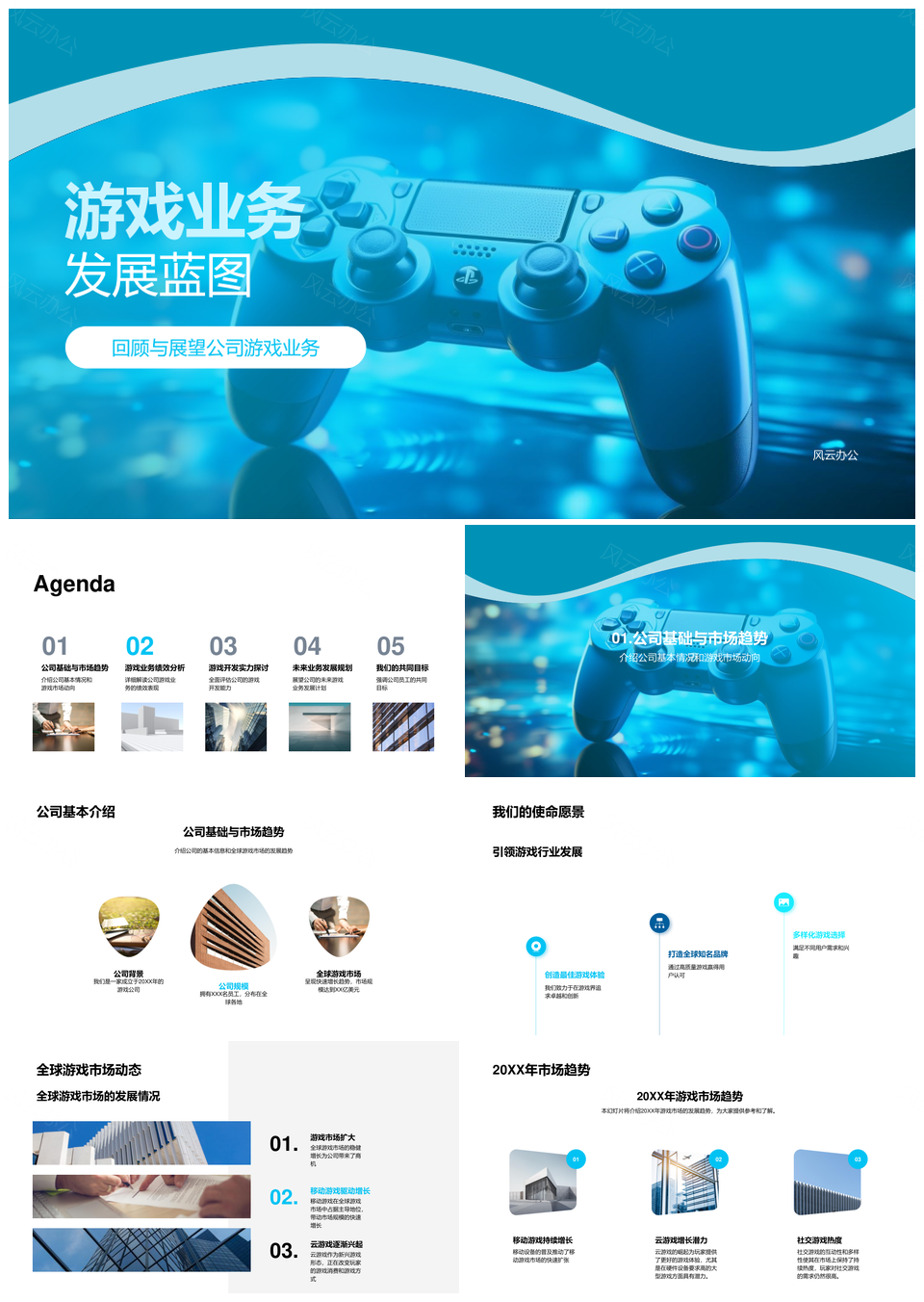 风云办公提供的公司游戏业务控制器发展蓝图PPT模板,下载格式为pptx,一共24页,作品中文字及图均可以修改和编辑,图片更改请在作品中右键图片并更换,文字修改请直接点击文字进行修改。