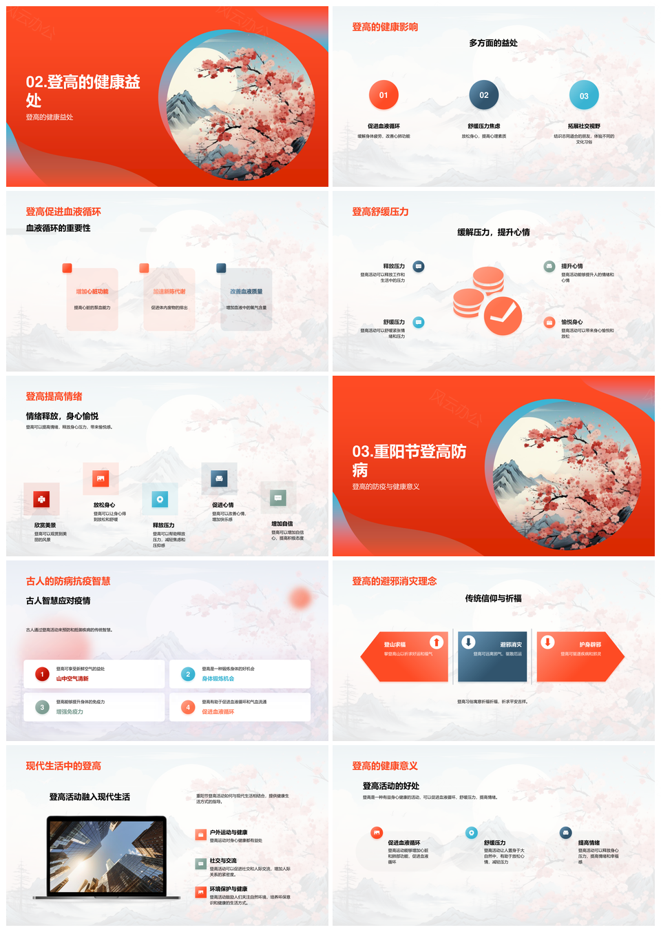 风云办公提供的重阳登高强身防疫缓压提情绪PPT模板,下载格式为pptx,一共28页,作品中文字及图均可以修改和编辑,图片更改请在作品中右键图片并更换,文字修改请直接点击文字进行修改。