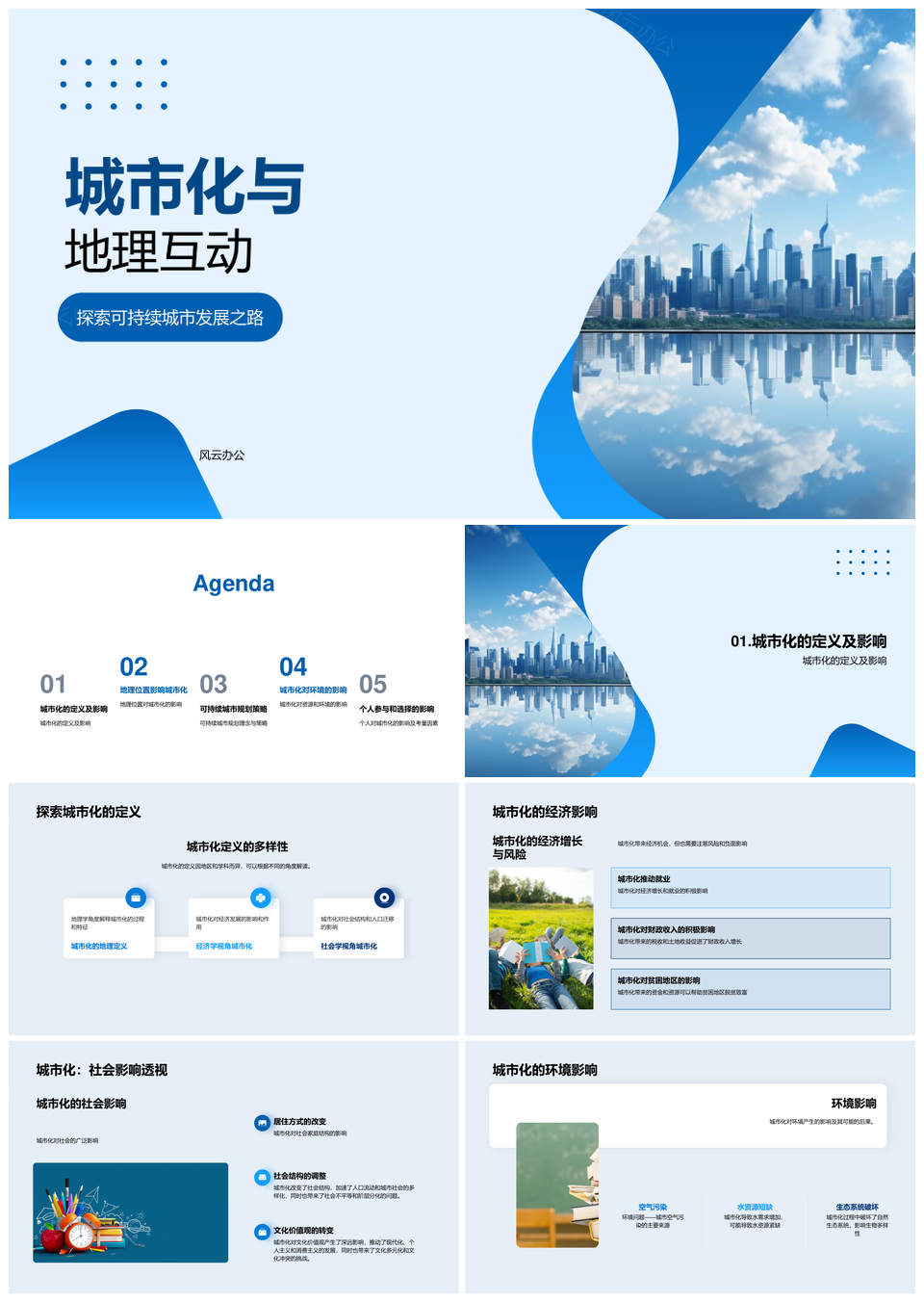 国潮风城市化可持续发展经济社环资源管理PPT模板
