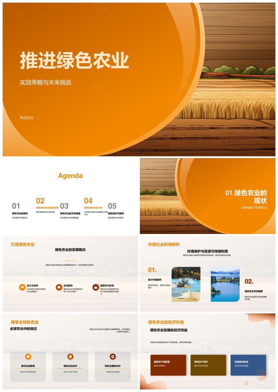 风云办公提供的绿色农业全球策略技术优化与挑战应对PPT模板,下载格式为pptx,一共33页,作品中文字及图均可以修改和编辑,图片更改请在作品中右键图片并更换,文字修改请直接点击文字进行修改。