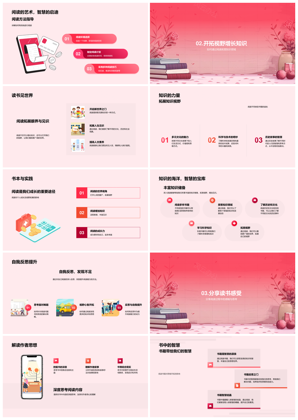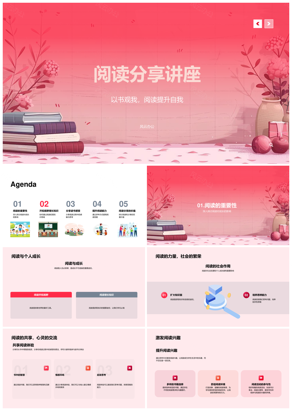 风云办公提供的阅读分享讲座知识增长与深度思考PPT模板,下载格式为pptx,一共33页,作品中文字及图均可以修改和编辑,图片更改请在作品中右键图片并更换,文字修改请直接点击文字进行修改。