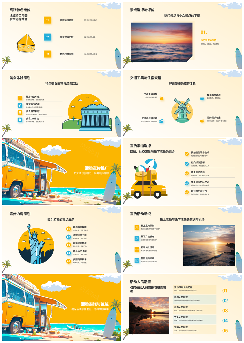 这是一张2025暑期美食美景融合一站式创新休闲旅游体验PPT模板,包含2025、暑期、美食、美景、融合、一站式、创新、休闲、旅游、体验等主题内容,也可用作2025暑期美食美景融合、美食美景融合一站式创新、融合一站式创新休闲旅游、一站式创新休闲旅游体验、2025暑期美食美景、暑期美食美景融合、美食美景融合一站式、美景融合一站式创新、融合一站式创新休闲、一站式创新休闲旅游、创新休闲旅游体验、2025暑期美食、暑期美食美景、美食美景融合、融合一站式创新、一站式创新休闲、创新休闲旅游、休闲旅游体验等PPT场景使用。 风云办公提供的2025暑期美食美景融合一站式创新休闲旅游体验PPT模板,下载格式为pptx,一共20页,作品中文字及图均可以修改和编辑,图片更改请在作品中右键图片并更换,文字修改请直接点击文字进行修改。