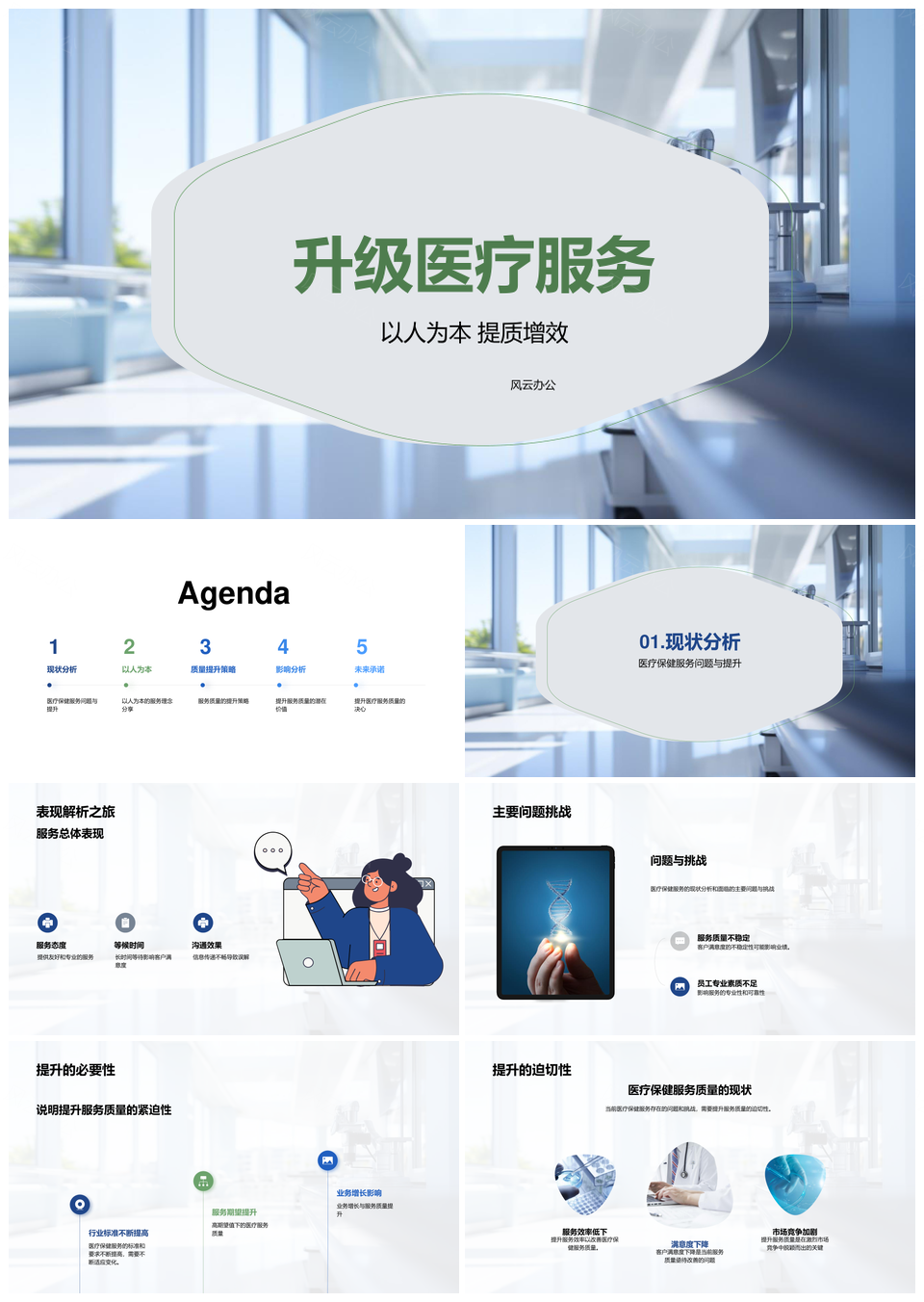 风云办公提供的以人为本升级医疗服务质量流程素质PPT模板,下载格式为pptx,一共25页,作品中文字及图均可以修改和编辑,图片更改请在作品中右键图片并更换,文字修改请直接点击文字进行修改。