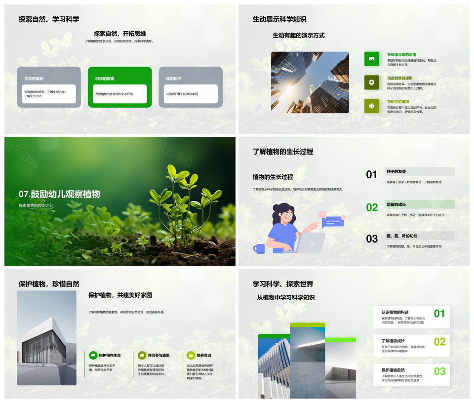 幼儿成长家校共育环保数学语言科学积木探索PPT模板