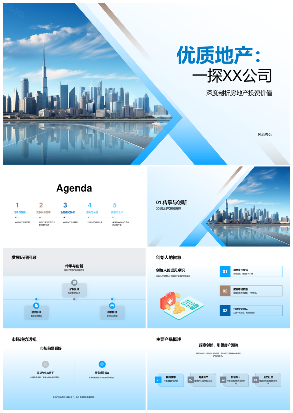 风云办公提供的XX房地产投资价值市场趋势品牌解析PPT模板,下载格式为pptx,一共33页,作品中文字及图均可以修改和编辑,图片更改请在作品中右键图片并更换,文字修改请直接点击文字进行修改。