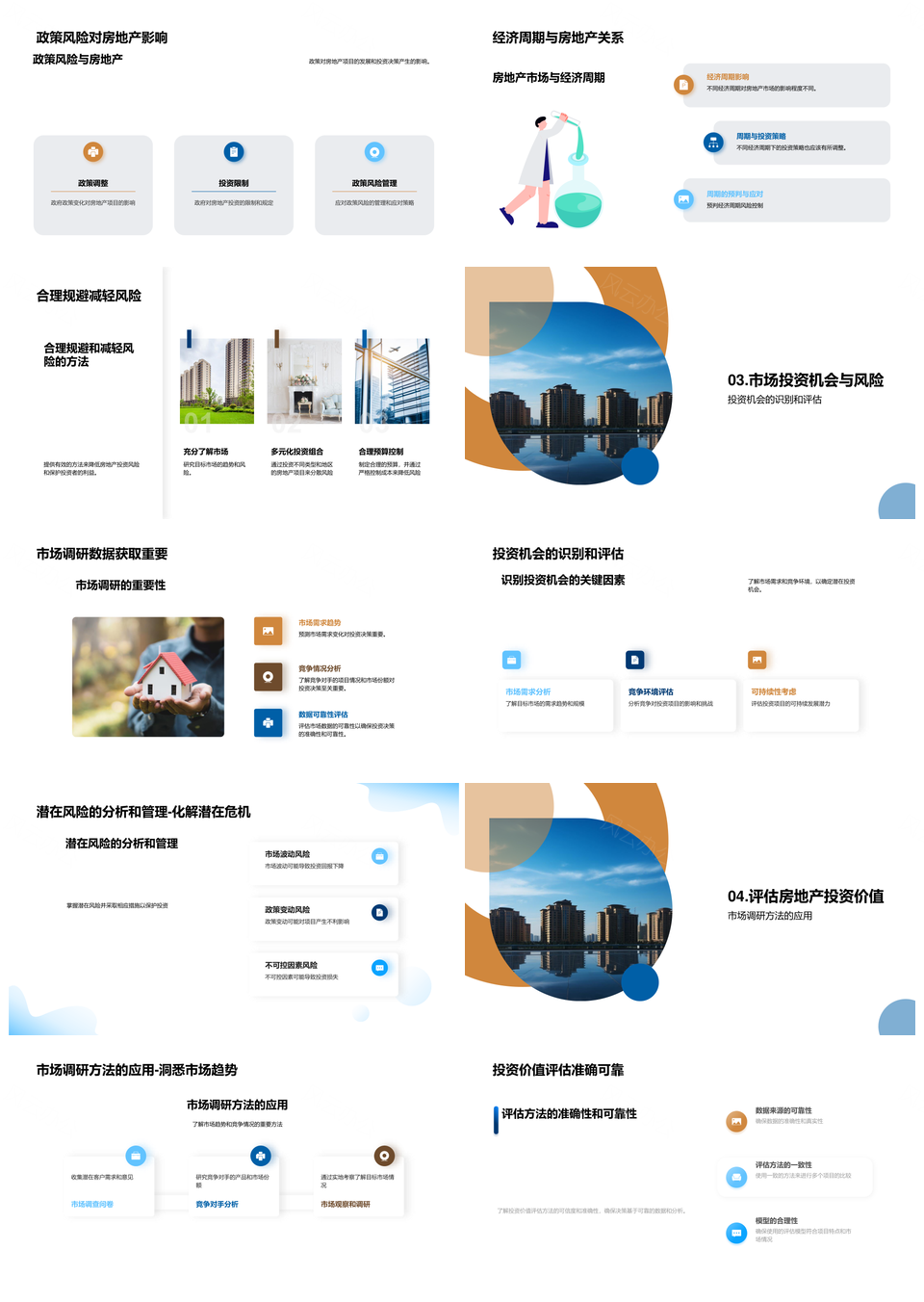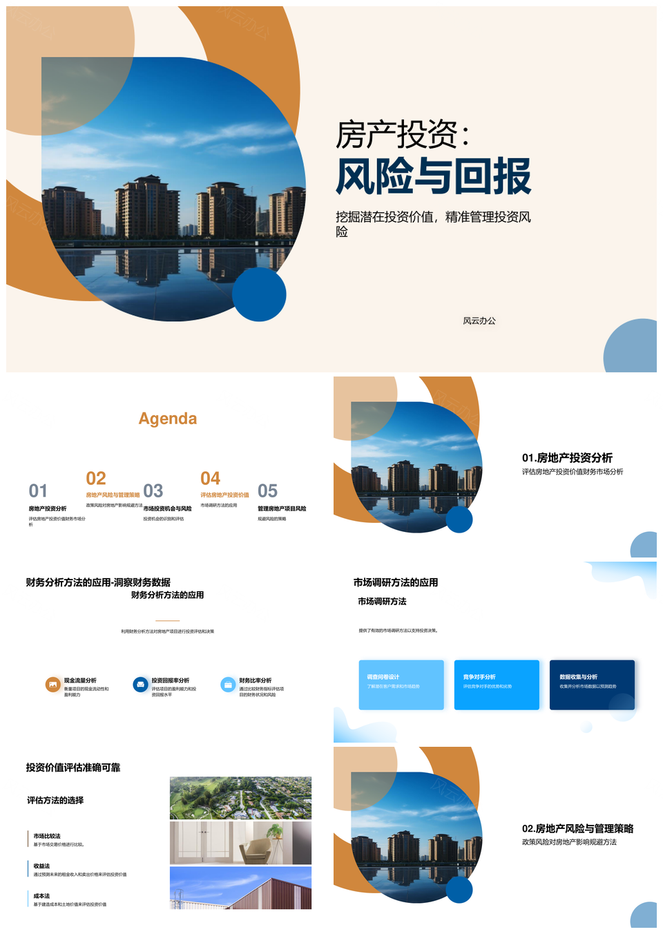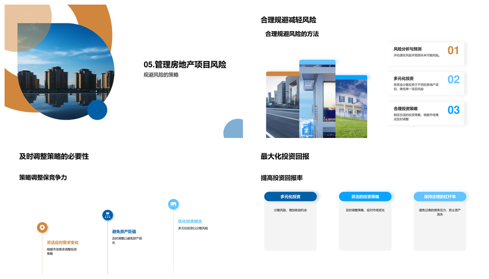 风云办公提供的房地产投资风险机遇分析管理PPT模板,下载格式为pptx,一共22页,作品中文字及图均可以修改和编辑,图片更改请在作品中右键图片并更换,文字修改请直接点击文字进行修改。