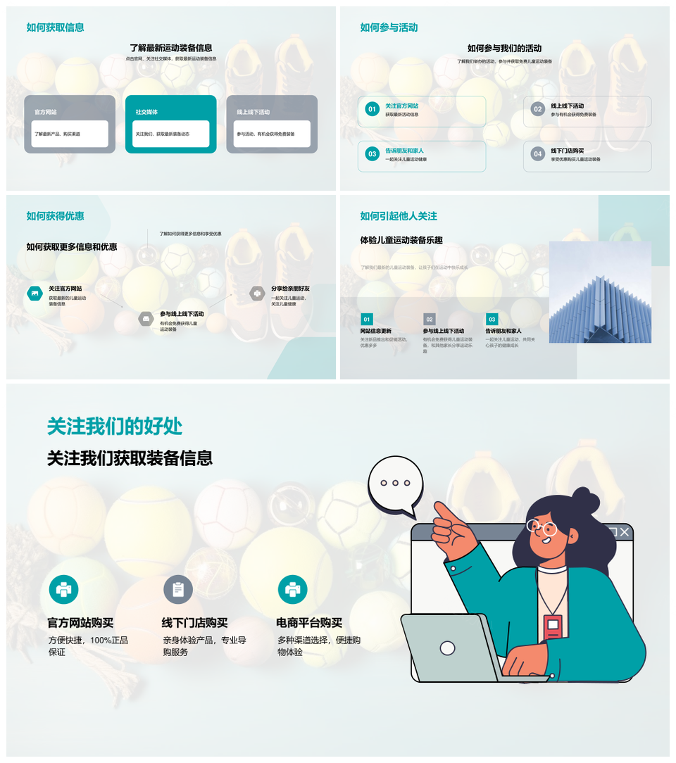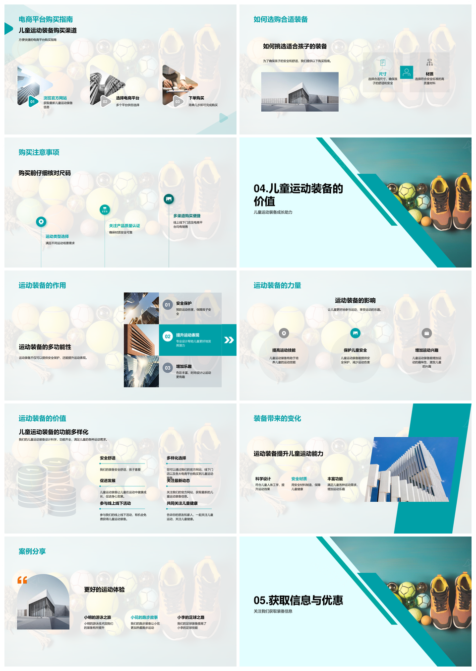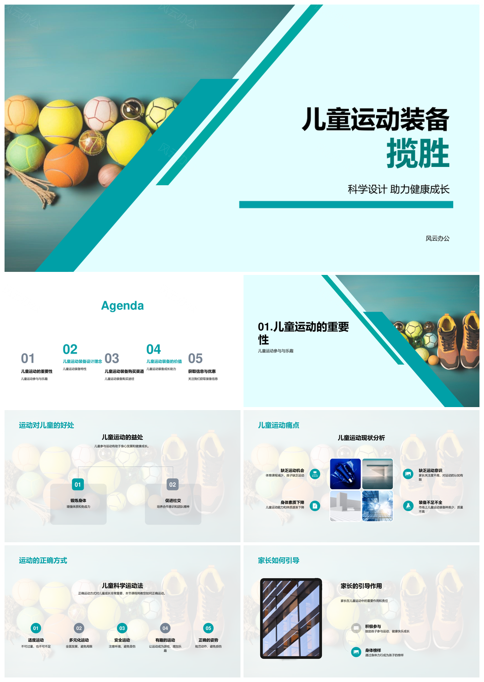 科学设计儿童运动装备助健康成长体育品牌PPT模板推荐