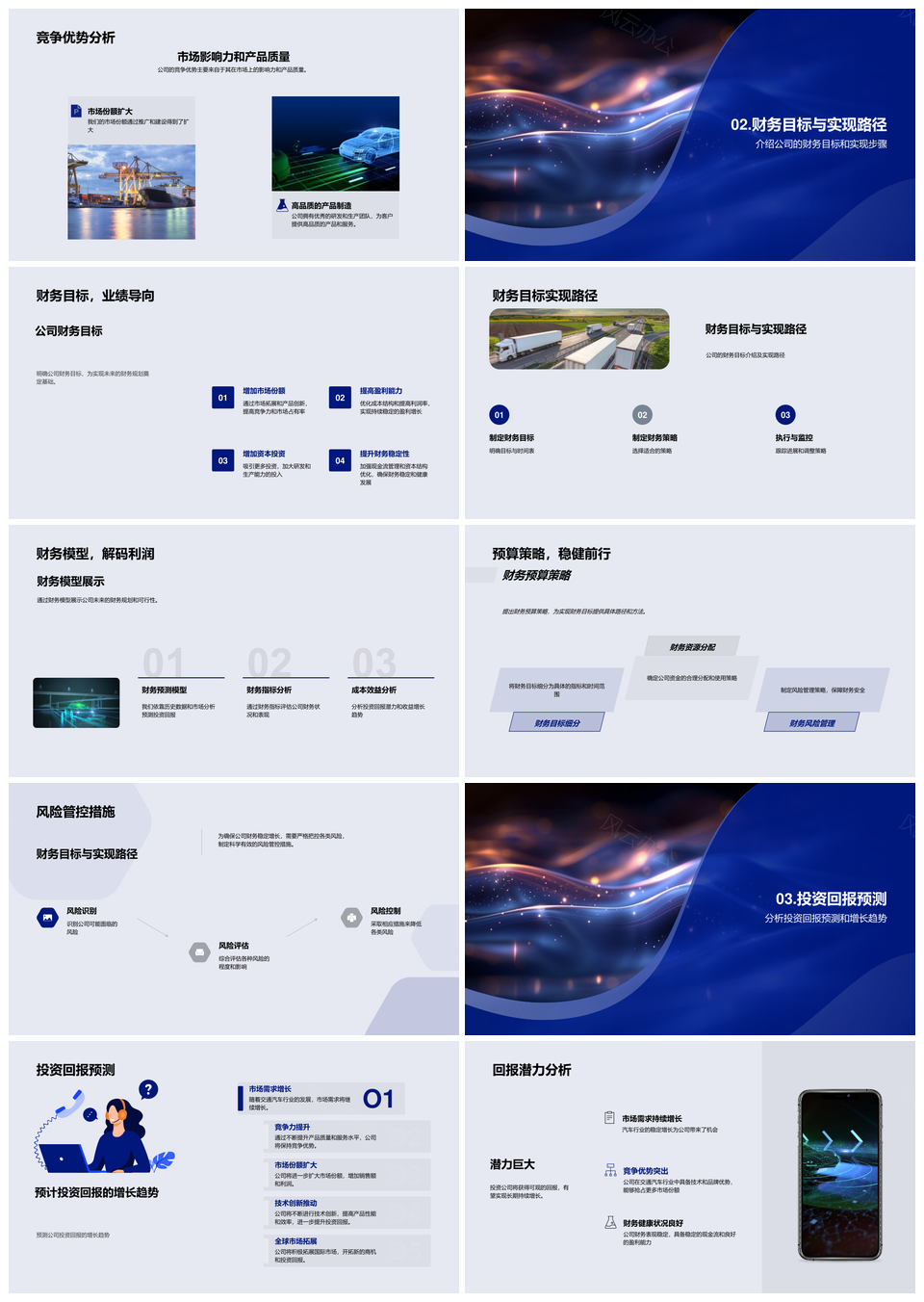 这是一张汽车财报投资潜力财务规划竞争优势分析PPT模板,包含汽车、财报、投资、潜力、财务、规划、竞争、优势、分析等主题内容,也可用作汽车财报投资潜力、投资潜力财务规划、财务规划竞争优势、竞争优势分析、汽车财报投资、财报投资潜力、投资潜力财务、潜力财务规划、财务规划竞争、规划竞争优势、竞争分析、汽车财报、财报投资、投资潜力、财务规划等PPT场景使用。 风云办公提供的汽车财报投资潜力财务规划竞争优势分析PPT模板,下载格式为pptx,一共33页,作品中文字及图均可以修改和编辑,图片更改请在作品中右键图片并更换,文字修改请直接点击文字进行修改。