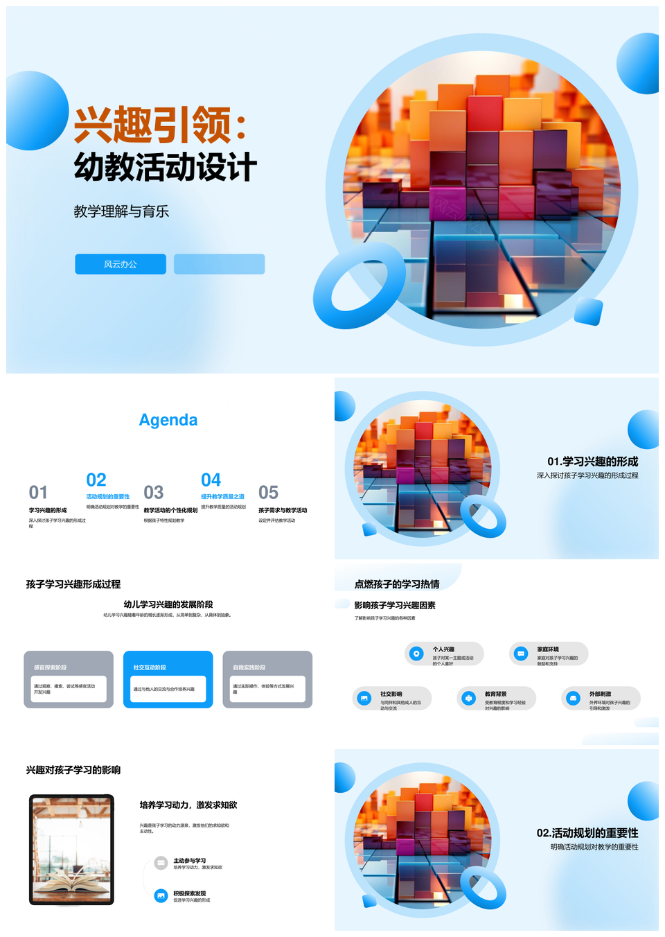 风云办公提供的兴趣引领幼教安全活动规划与教学PPT模板,下载格式为pptx,一共23页,作品中文字及图均可以修改和编辑,图片更改请在作品中右键图片并更换,文字修改请直接点击文字进行修改。