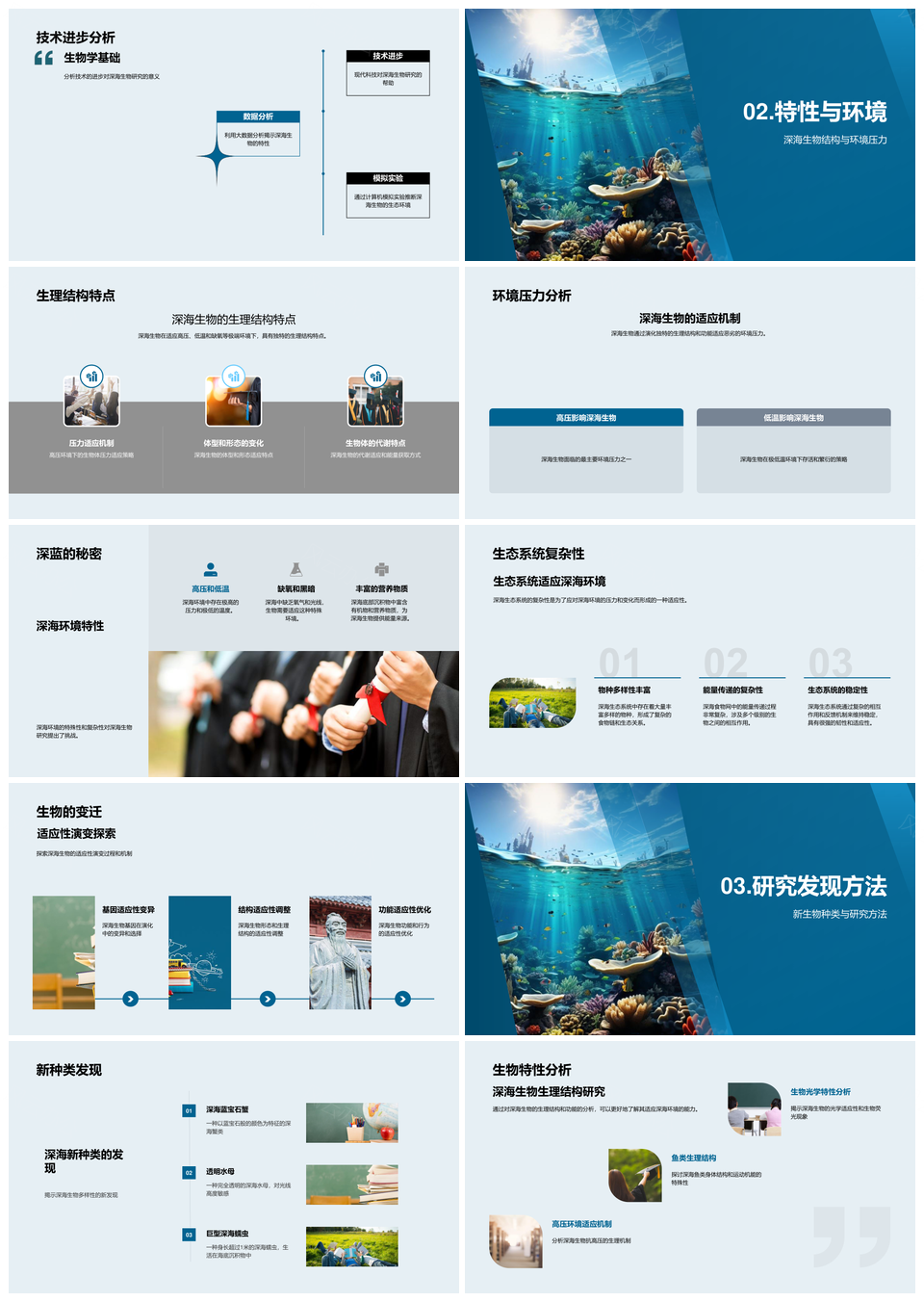 这是一张深海生物多样性新种发现与生态保护研究PPT模板,包含深海、生物多样性、新种发现、生态保护研究等主题内容,也可用作深海生物多样性新种发现、生物多样性新种发现研究、新种发现生态保护研究、深海生物多样性生态保护研究、深海新种发现生态保护、生物多样性新种生态保护研究、深海生物多样性研究、生物多样性生态保护研究、新种生态保护研究、深海生态保护研究、生态保护研究新种、深海新种发现、新种发现研究、深海生物多样性、生态保护研究等PPT场景使用。 风云办公提供的深海生物多样性新种发现与生态保护研究PPT模板,下载格式为pptx,一共33页,作品中文字及图均可以修改和编辑,图片更改请在作品中右键图片并更换,文字修改请直接点击文字进行修改。