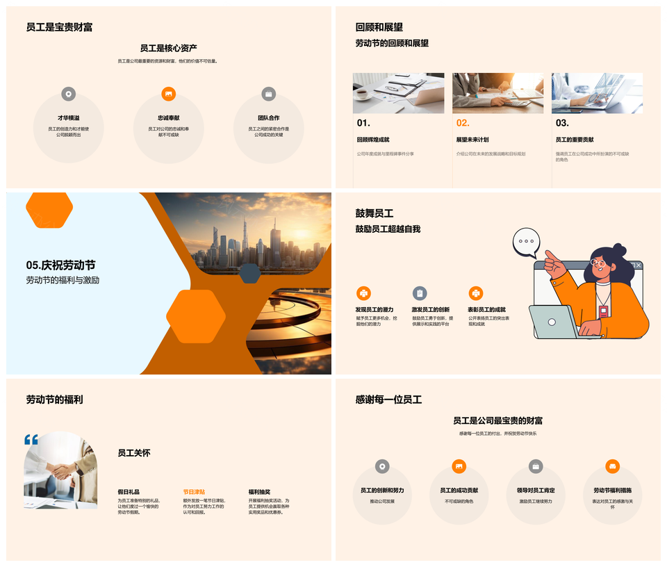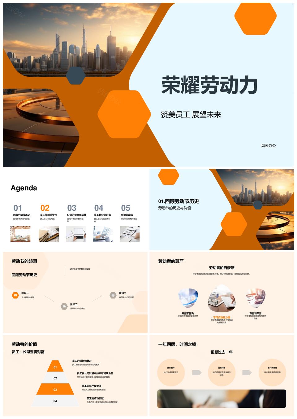 风云办公提供的荣耀员工劳动节共铸公司金色未来PPT模板,下载格式为pptx,一共24页,作品中文字及图均可以修改和编辑,图片更改请在作品中右键图片并更换,文字修改请直接点击文字进行修改。