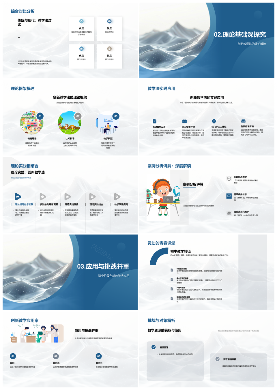 风云办公提供的初中创新教学法理论实践优化提升PPT模板,下载格式为pptx,一共30页,作品中文字及图均可以修改和编辑,图片更改请在作品中右键图片并更换,文字修改请直接点击文字进行修改。