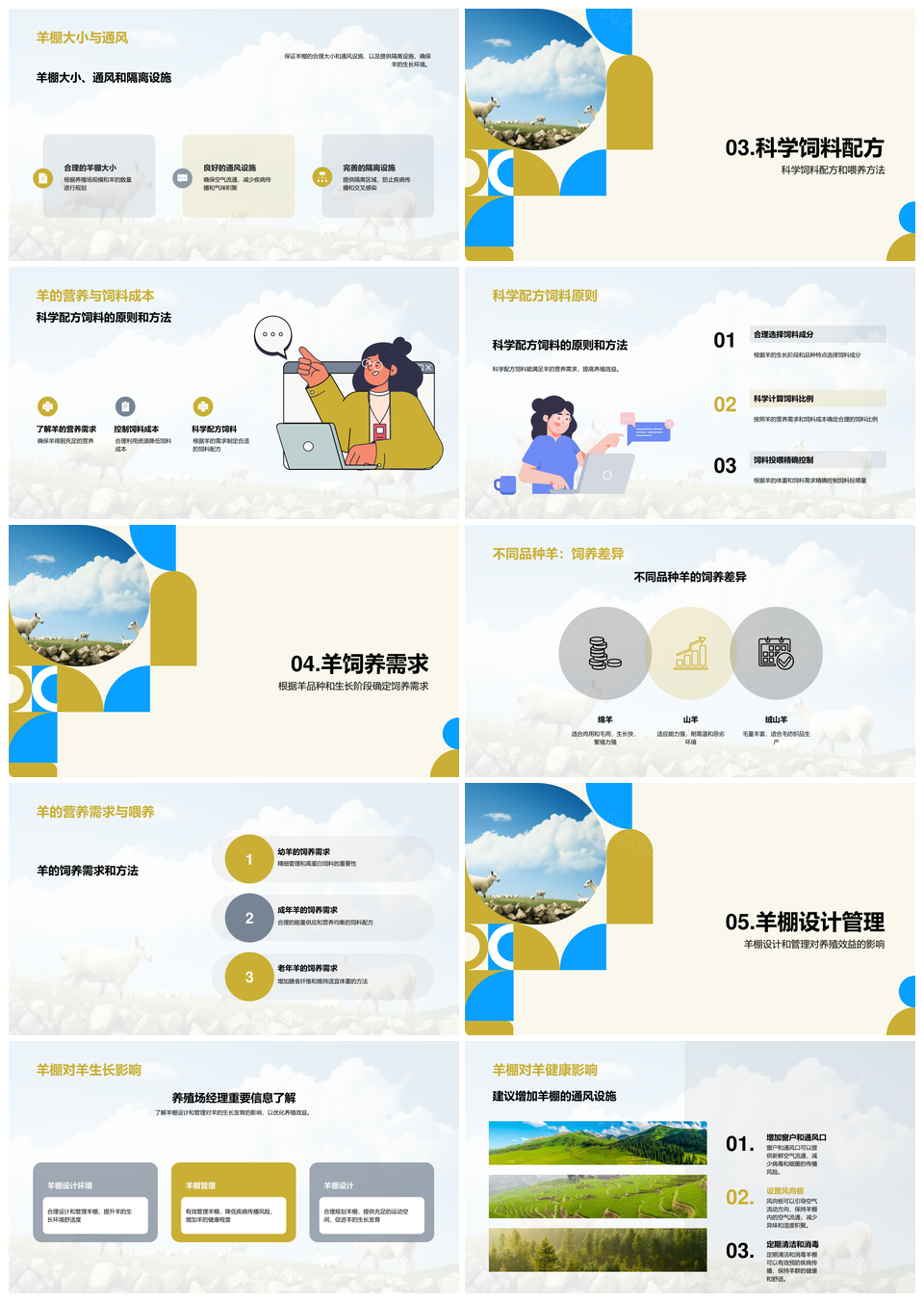 风云办公提供的羊饲养技术管理提升效益产量生长周期PPT模板,下载格式为pptx,一共19页,作品中文字及图均可以修改和编辑,图片更改请在作品中右键图片并更换,文字修改请直接点击文字进行修改。
