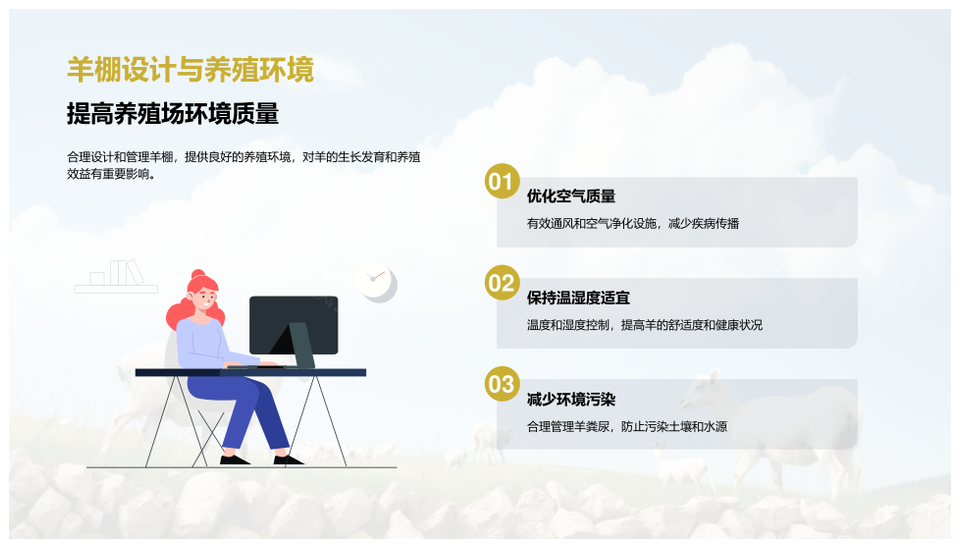 这是一张羊饲养技术管理提升效益产量生长周期PPT模板,包含羊饲养、技术、管理、提升、效益、产量、生长周期等主题内容,也可用作羊饲养技术管理提升效益、羊饲养技术管理提升产量、技术管理提升效益产量生长周期、管理提升效益产量生长周期、羊饲养技术管理生长周期、提升效益产量生长周期、羊饲养技术管理效益、技术管理提升效益产量、管理提升效益产量、羊饲养技术管理提升、技术管理生长周期、提升产量生长周期、效益产量生长周期、羊饲养技术管理、技术管理提升效益等PPT场景使用。