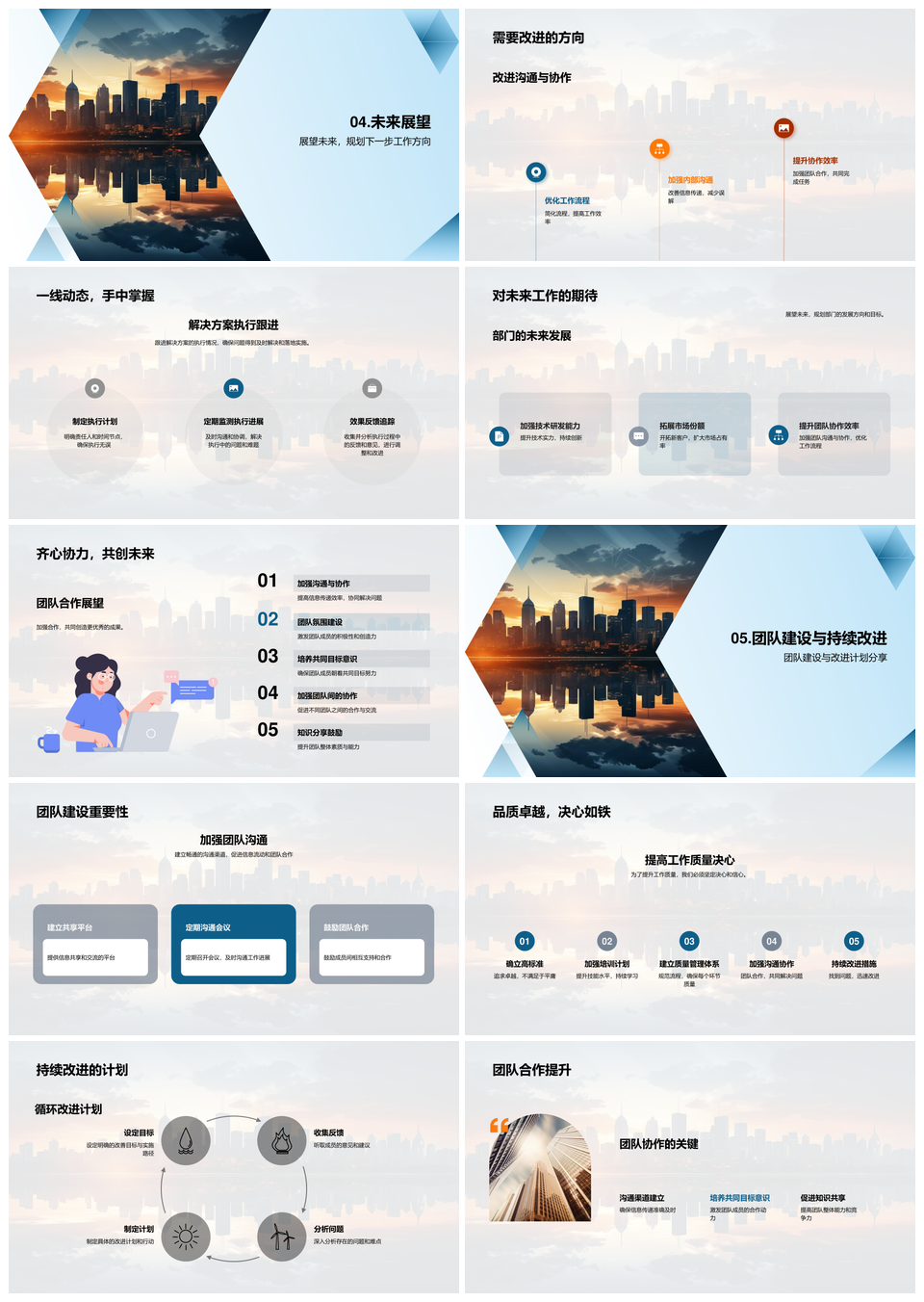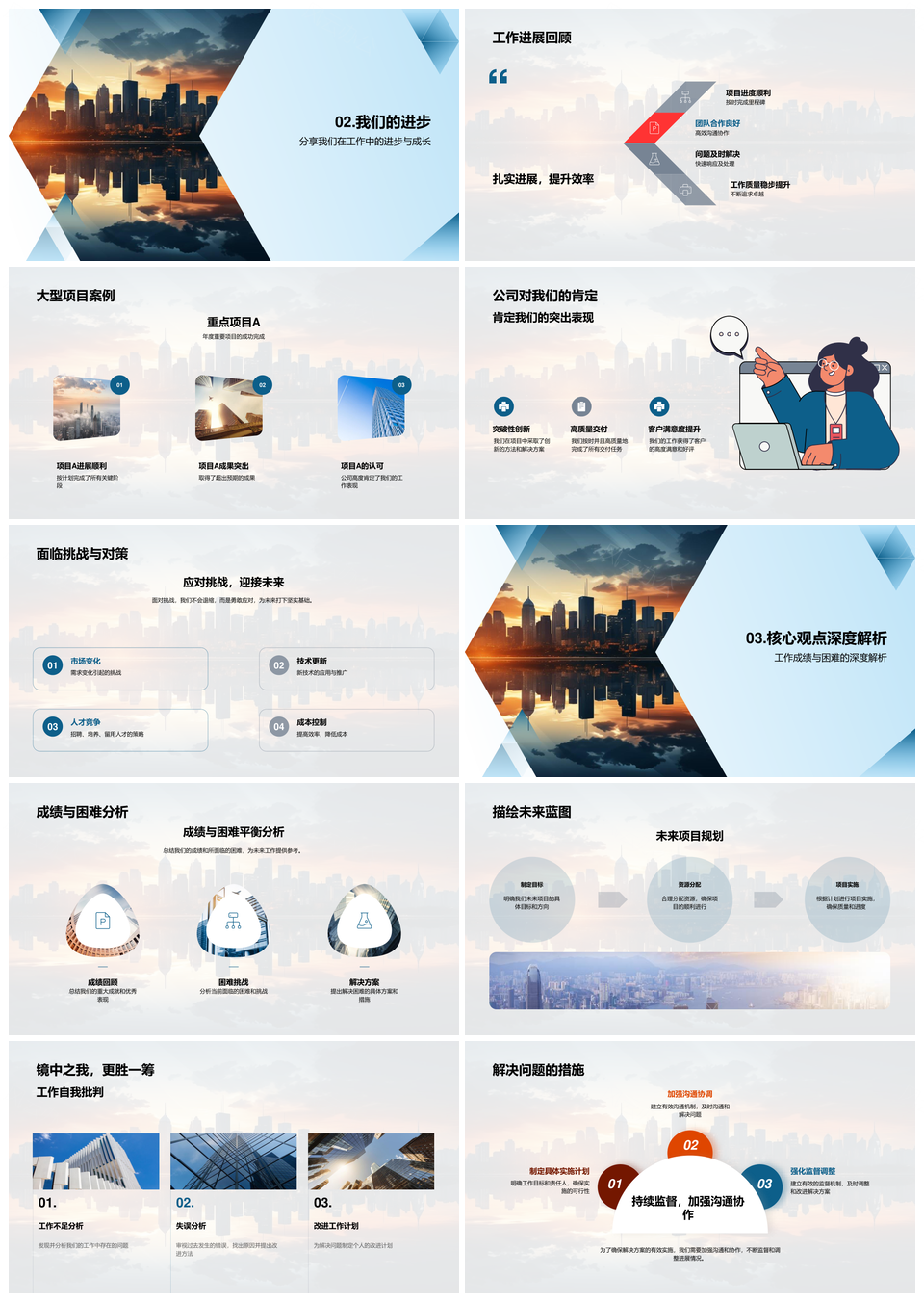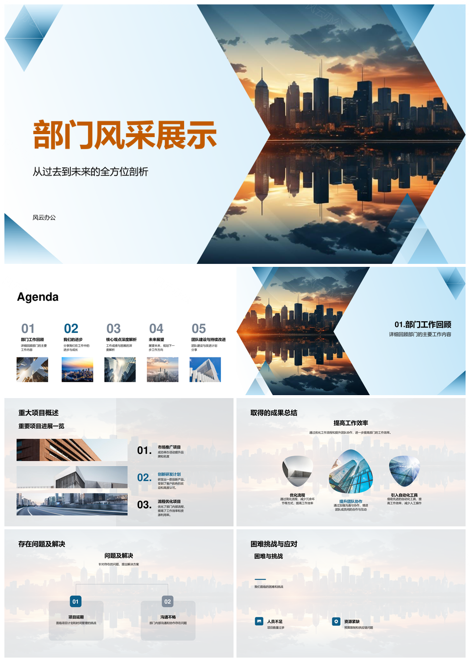 部门风采重大项目成果总结获肯定城市天际线PPT模板推荐