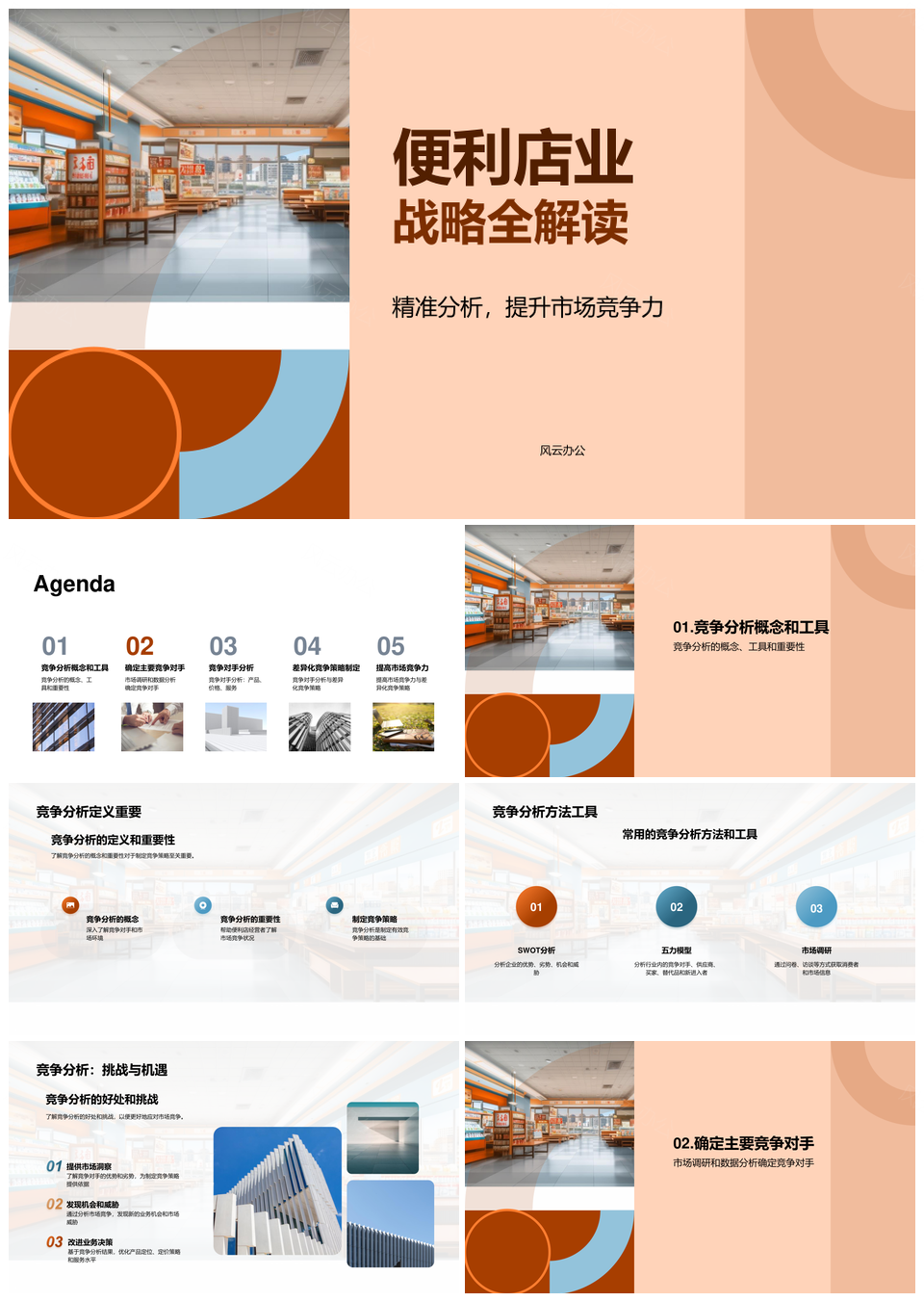 风云办公提供的便利店市场竞争分析策略解读PPT模板,下载格式为pptx,一共23页,作品中文字及图均可以修改和编辑,图片更改请在作品中右键图片并更换,文字修改请直接点击文字进行修改。