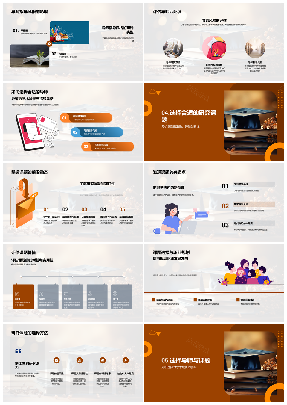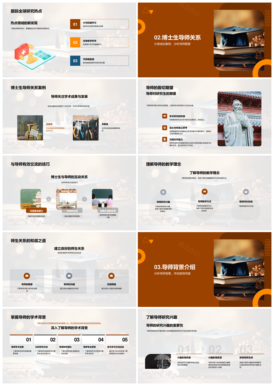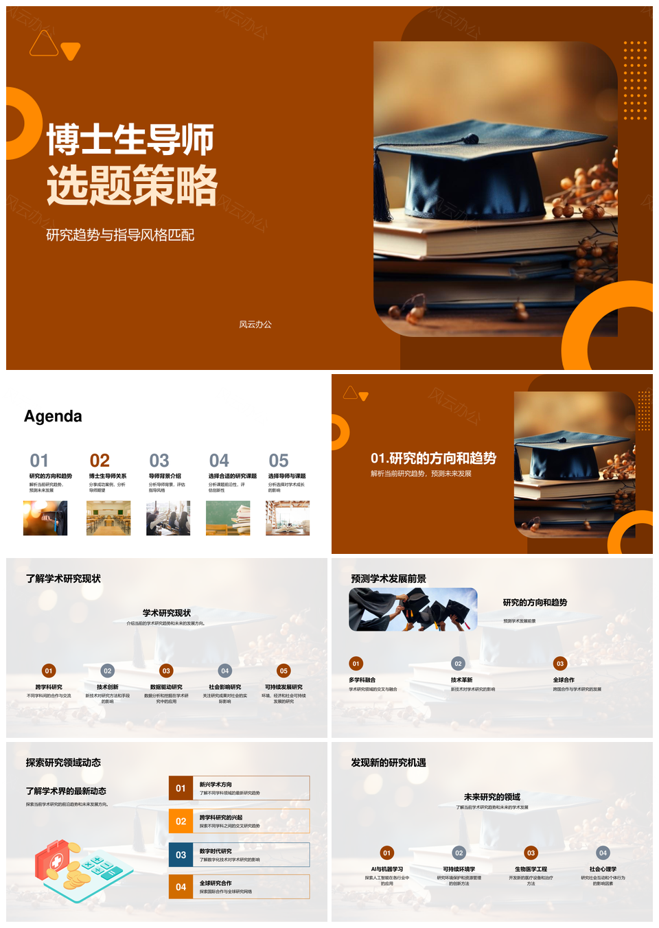 风云办公提供的博士生导师学术背景指导风格选题策略PPT模板,下载格式为pptx,一共33页,作品中文字及图均可以修改和编辑,图片更改请在作品中右键图片并更换,文字修改请直接点击文字进行修改。
