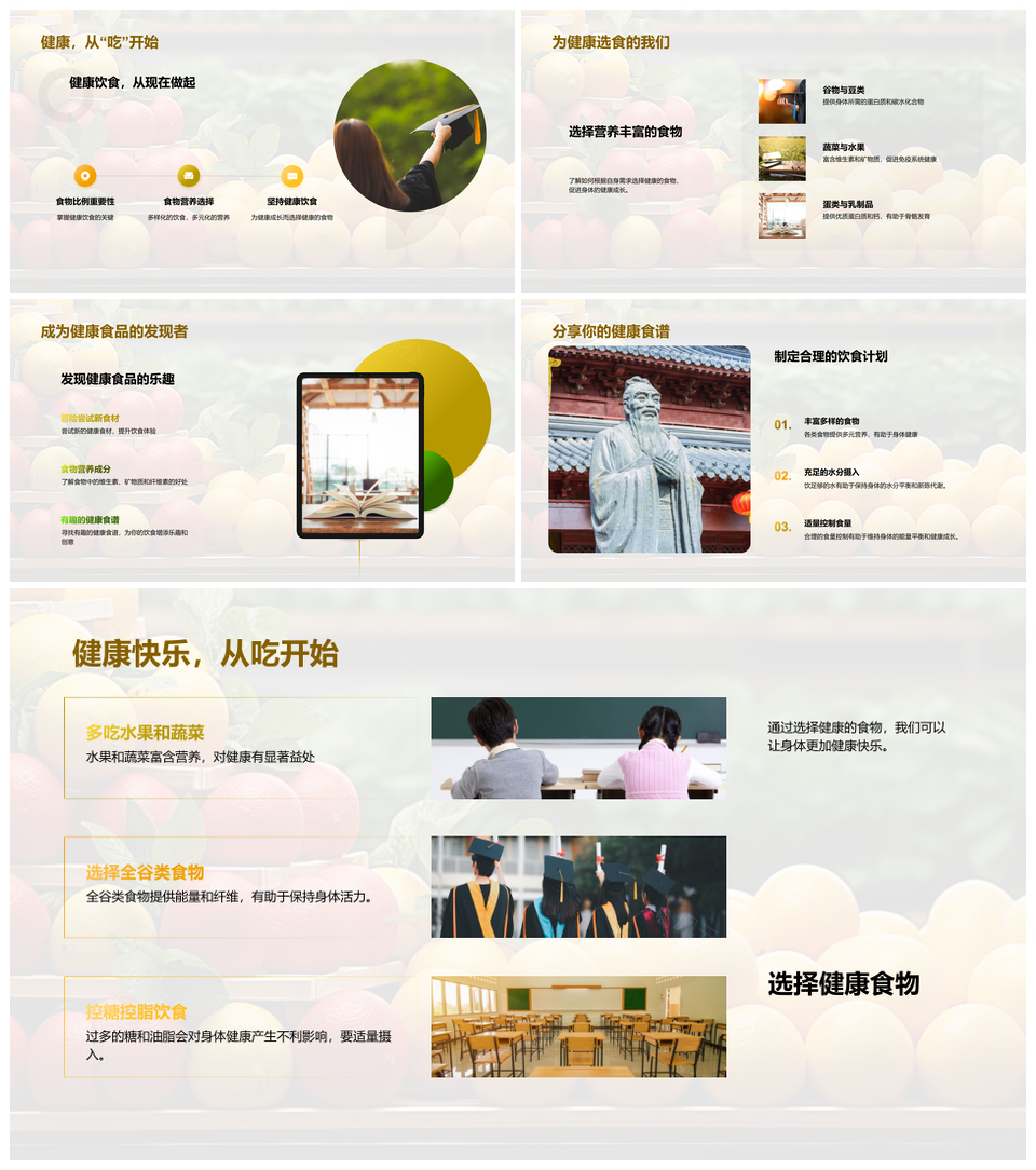 小学体育教师健康饮食营养素蔬果全谷蛋白质PPT模板