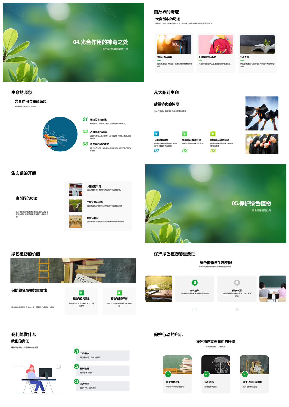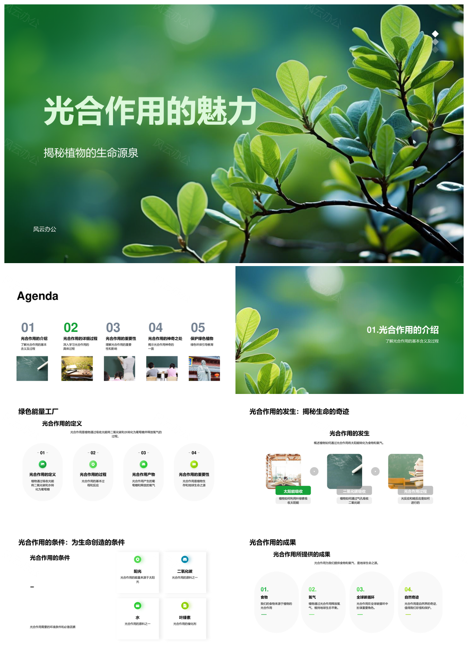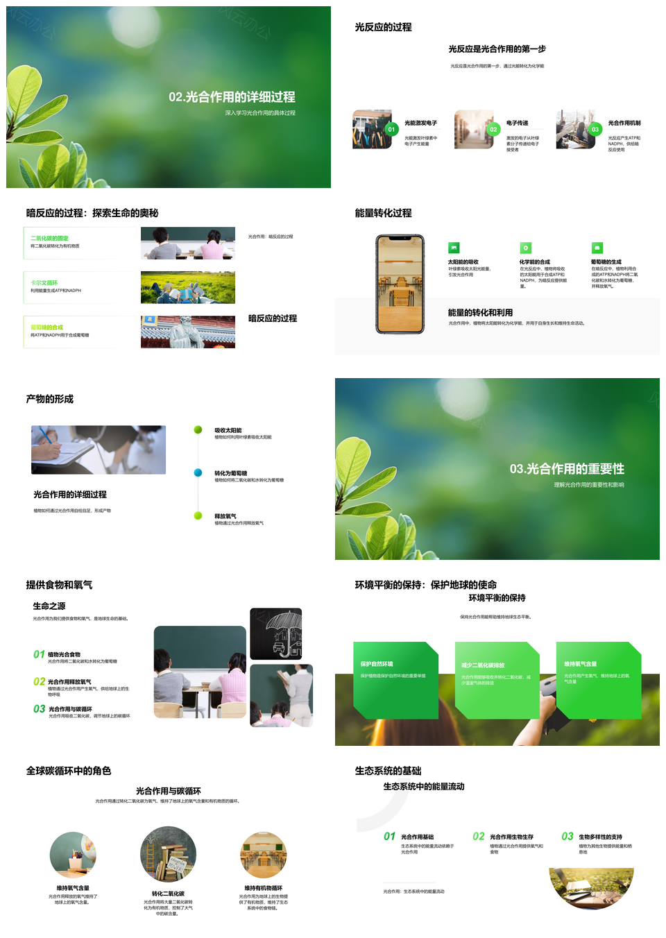 风云办公提供的绿色植物光合作用维系碳循环产氧供食PPT模板,下载格式为pptx,一共28页,作品中文字及图均可以修改和编辑,图片更改请在作品中右键图片并更换,文字修改请直接点击文字进行修改。