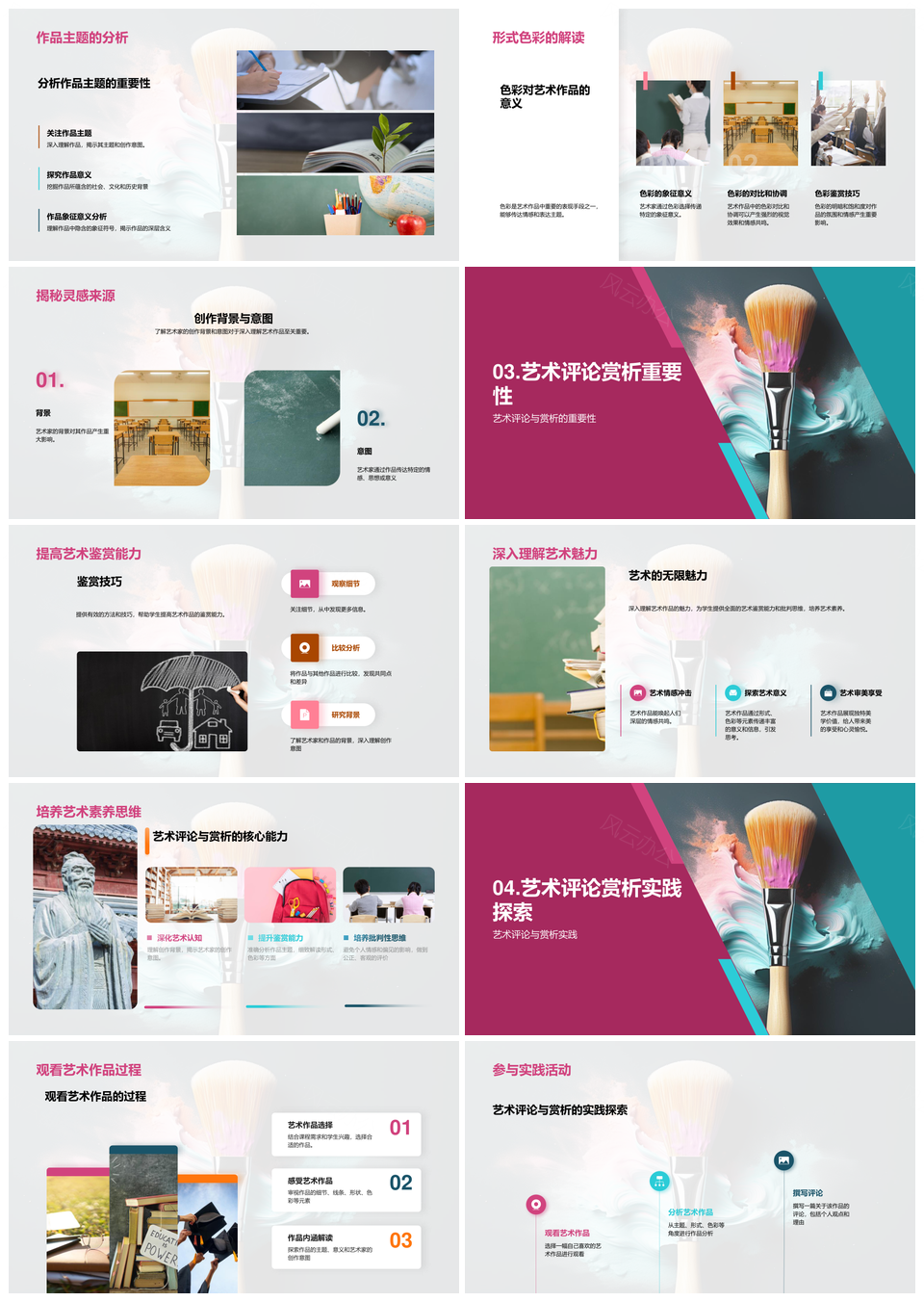 风云办公提供的艺术鉴赏评析客观公正主题色彩背景PPT模板,下载格式为pptx,一共23页,作品中文字及图均可以修改和编辑,图片更改请在作品中右键图片并更换,文字修改请直接点击文字进行修改。