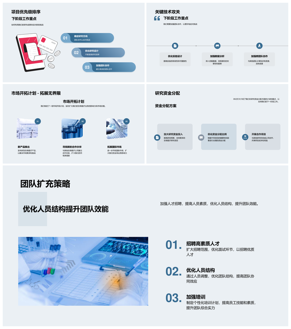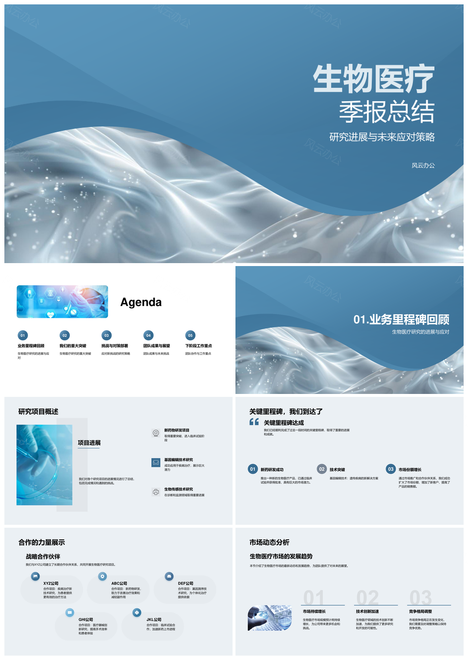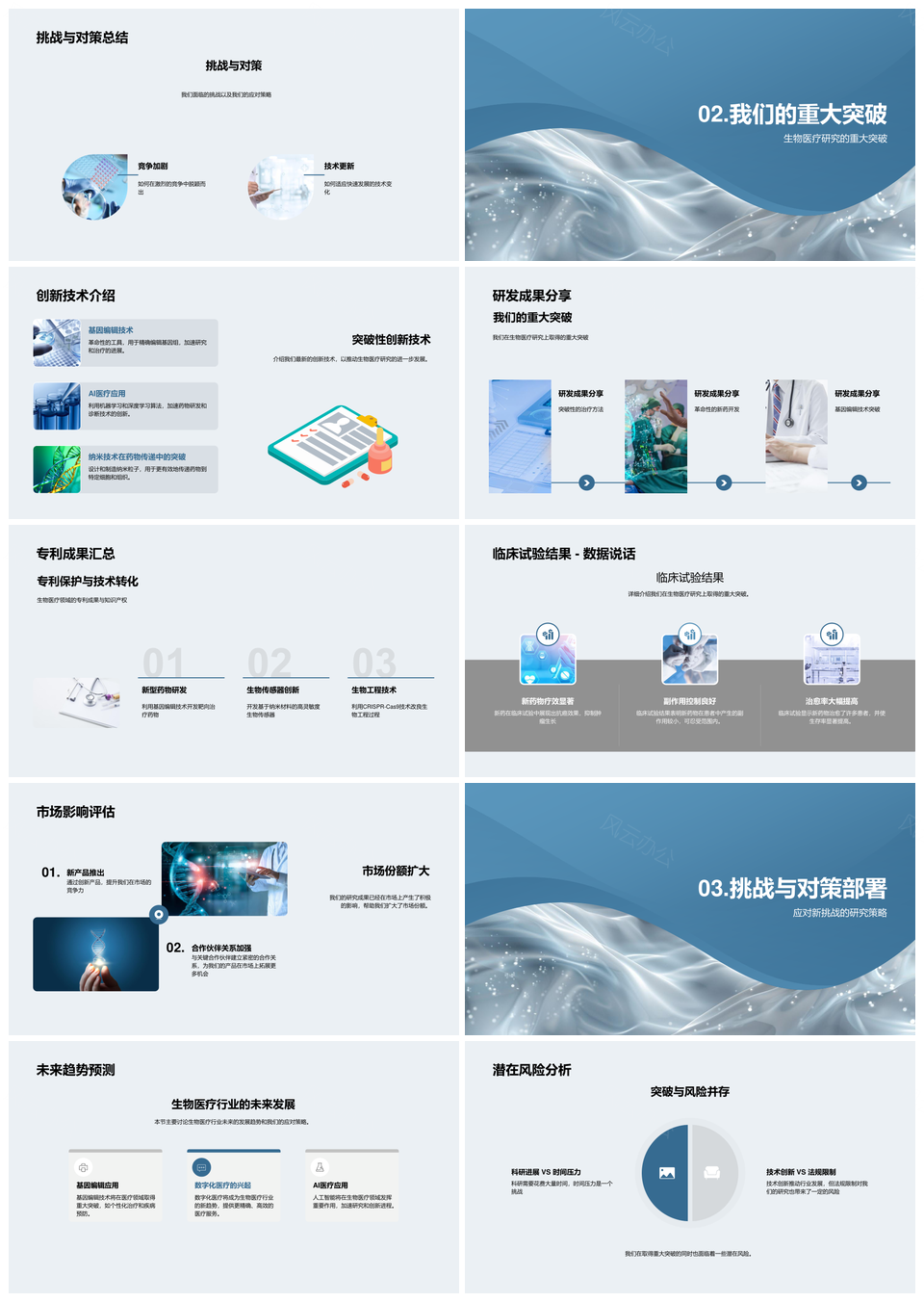 生物医疗季报研究进展业务里程碑挑战创新技术临床市场专利PPT模板推荐