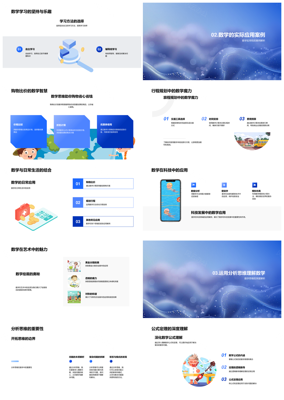 这是一张数学实践策略解析与生活应用案例PPT模板,包含数学实践、策略解析、生活应用、案例等主题内容,也可用作数学实践策略解析、数学实践策略、实践策略解析、解析生活应用、生活应用案例、数学策略解析、数学生活应用、实践应用案例、数学实践、实践策略、策略解析、生活应用、应用案例、数学应用、实践应用等PPT场景使用。 风云办公提供的数学实践策略解析与生活应用案例PPT模板,下载格式为pptx,一共33页,作品中文字及图均可以修改和编辑,图片更改请在作品中右键图片并更换,文字修改请直接点击文字进行修改。