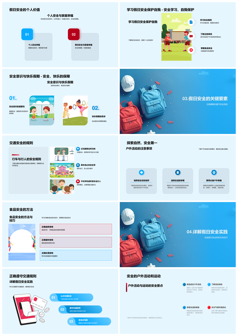 2025三年级假日安全教育交通户外食品安全PPT模板推荐