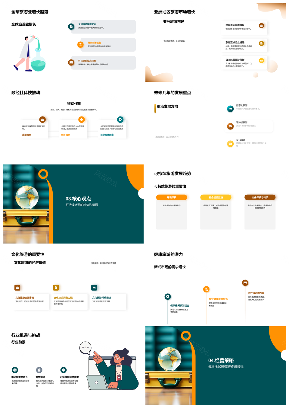 这是一张旅游行业分析师PEST视角下可持续文旅趋势PPT模板,包含旅游行业、分析师、PEST视角、可持续、文旅趋势等主题内容,也可用作旅游行业分析师PEST视角、旅游行业分析师可持续文旅、旅游行业PEST视角可持续、PEST视角可持续文旅趋势、行业分析师可持续文旅趋势、分析师PEST视角文旅趋势、旅游行业可持续文旅趋势、可持续文旅趋势旅游行业、行业PEST视角可持续趋势、旅游分析师可持续文旅、旅游行业可持续趋势、PEST视角文旅趋势、行业分析师视角、分析师可持续趋势、可持续文旅趋势等PPT场景使用。 风云办公提供的旅游行业分析师PEST视角下可持续文旅趋势PPT模板,下载格式为pptx,一共27页,作品中文字及图均可以修改和编辑,图片更改请在作品中右键图片并更换,文字修改请直接点击文字进行修改。