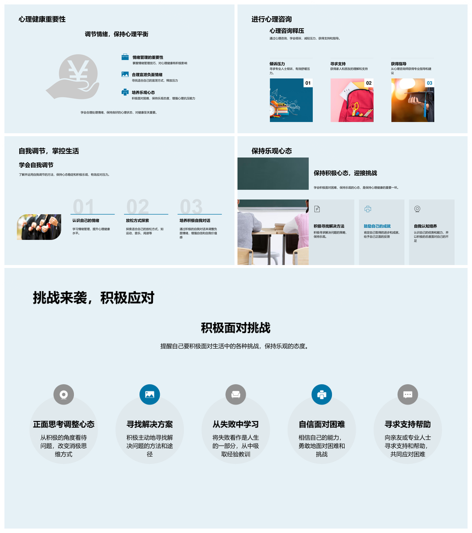 这是一张青少年心理健康压力应对情绪管理心理变化PPT模板,包含青少年、心理健康、压力、应对、情绪管理、心理变化等主题内容,也可用作青少年心理健康压力应对情绪管理、心理健康压力应对情绪管理心理变化、青少年压力应对情绪管理心理变化、压力应对情绪管理心理变化、青少年心理健康压力应对、心理健康压力应对情绪管理、青少年心理健康情绪管理、心理健康情绪管理心理变化、青少年心理变化情绪管理、压力应对心理变化情绪管理、青少年心理健康心理变化、心理健康心理变化情绪、压力应对情绪心理变化、青少年情绪管理心理变化、心理健康压力心理变化等PPT场景使用。 风云办公提供的青少年心理健康压力应对情绪管理心理变化PPT模板,下载格式为pptx,一共33页,作品中文字及图均可以修改和编辑,图片更改请在作品中右键图片并更换,文字修改请直接点击文字进行修改。