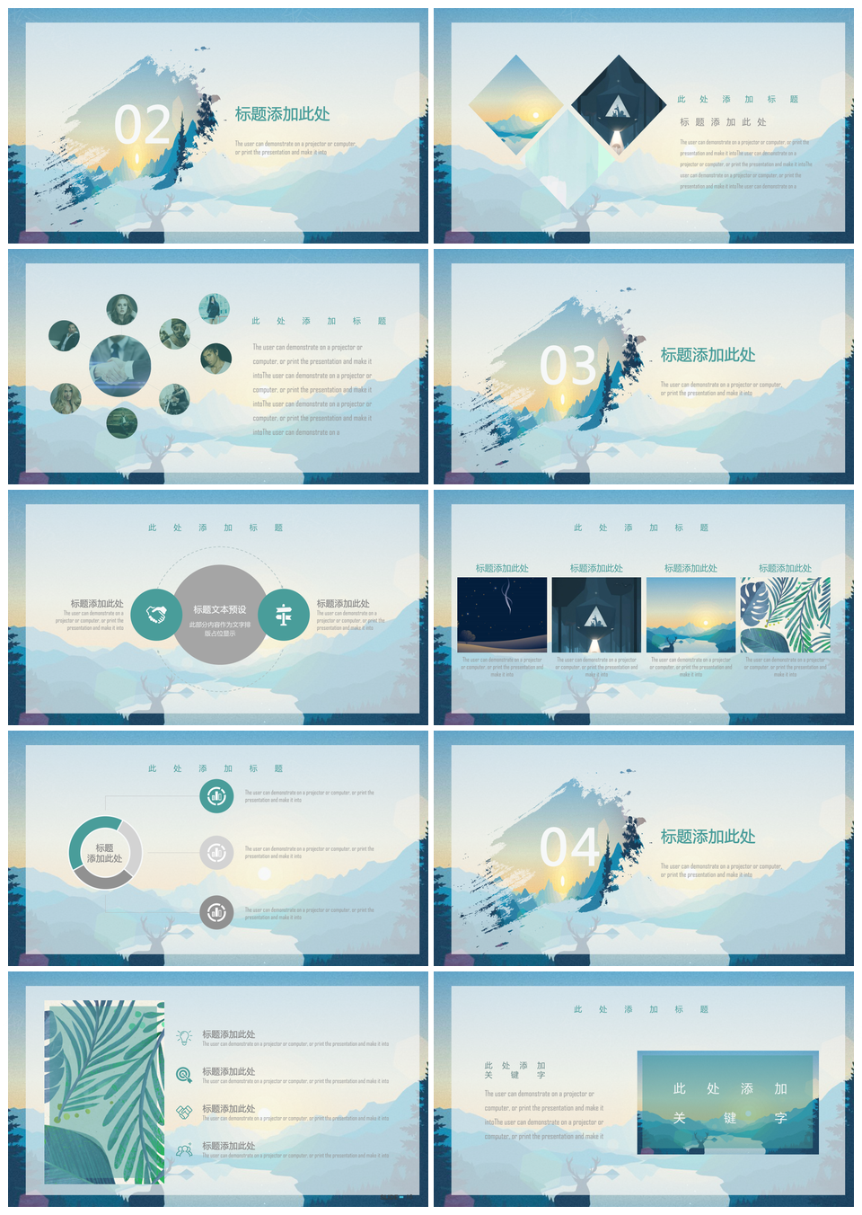 蓝色小清新诗和远方文艺插画风活动策划教育培训PPT模板