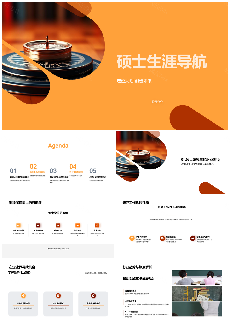 硕士研究生职业定位与行业趋势研究指南PPT模板推荐