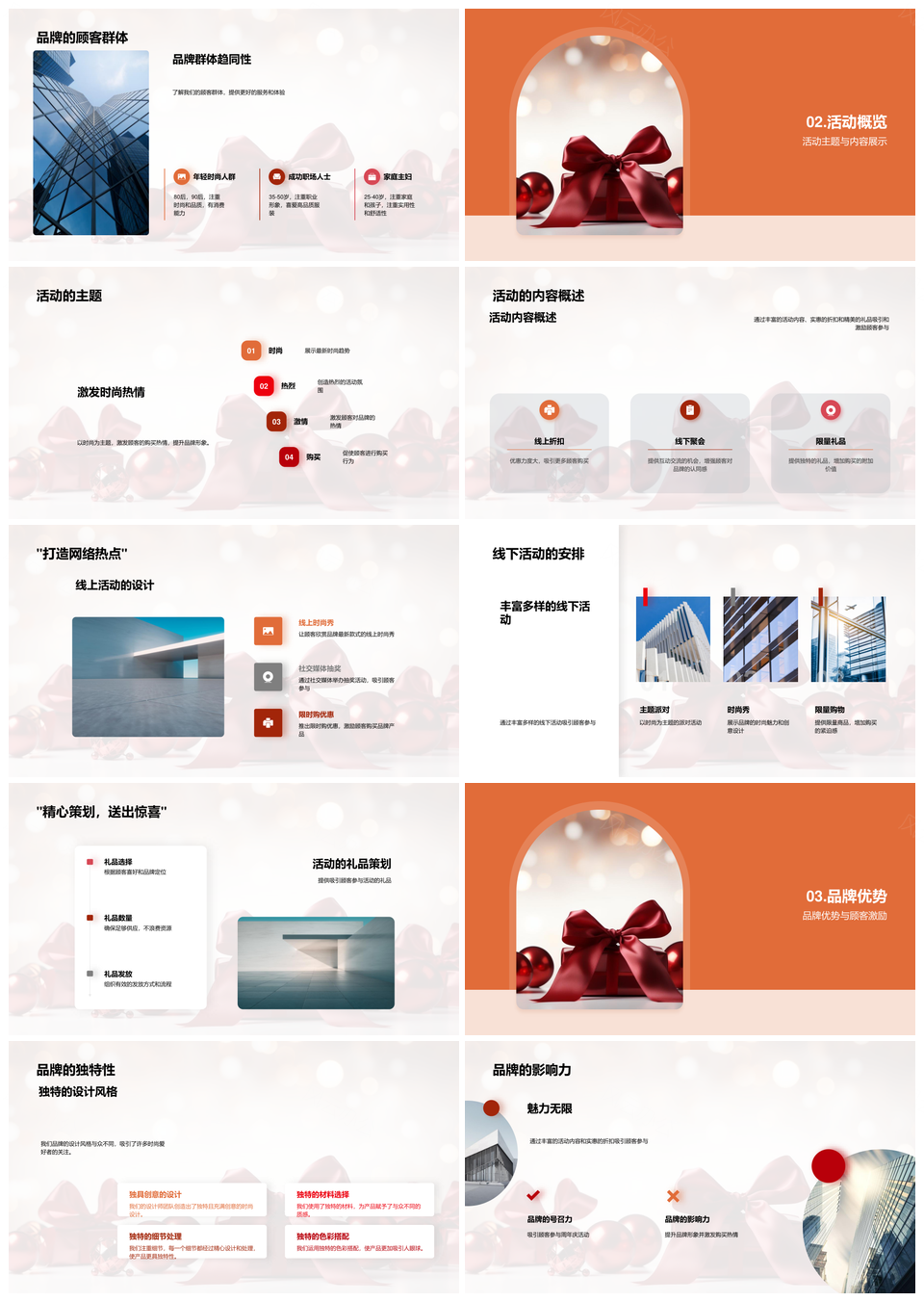 这是一张品牌周年庆策划聚史彰核线上线下定位客群PPT模板,包含品牌、周年庆、策划、聚史、彰核、线上、线下、定位、客群等主题内容,也可用作品牌周年庆策划线上线下、线上线下品牌周年庆策划、策划线上线下定位客群、品牌周年庆线上线下定位、线上线下定位客群策划、品牌周年庆线上线下、线上线下定位客群、策划定位客群、周年庆策划线上线下、策划品牌周年庆、线上线下客群定位、品牌策划线上线下、策划线上线下客群、定位客群策划、品牌周年庆定位等PPT场景使用。 风云办公提供的品牌周年庆策划聚史彰核线上线下定位客群PPT模板,下载格式为pptx,一共33页,作品中文字及图均可以修改和编辑,图片更改请在作品中右键图片并更换,文字修改请直接点击文字进行修改。