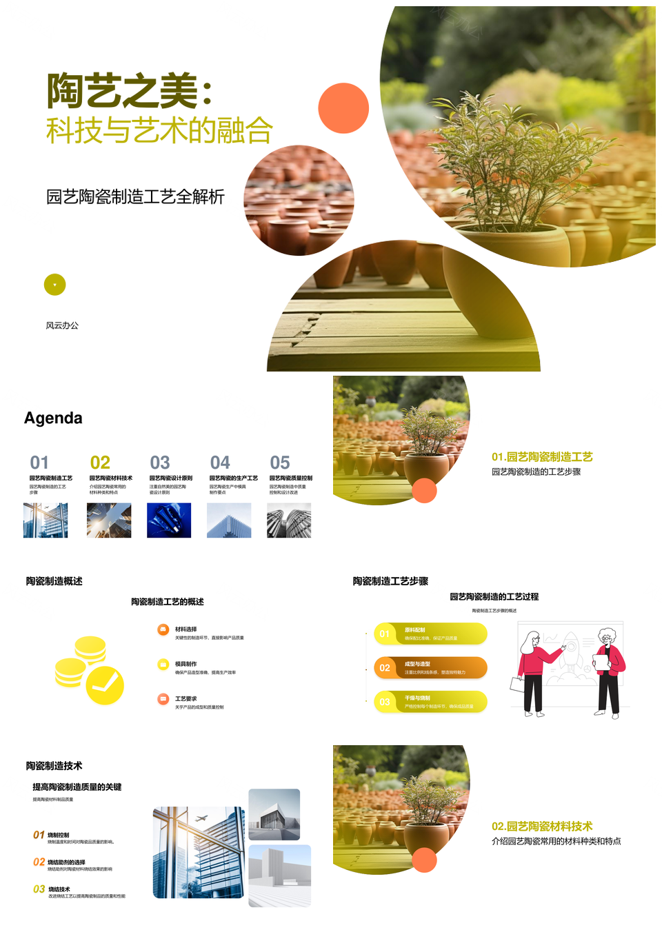 园艺陶瓷制造工艺与科技艺术融合PPT模板