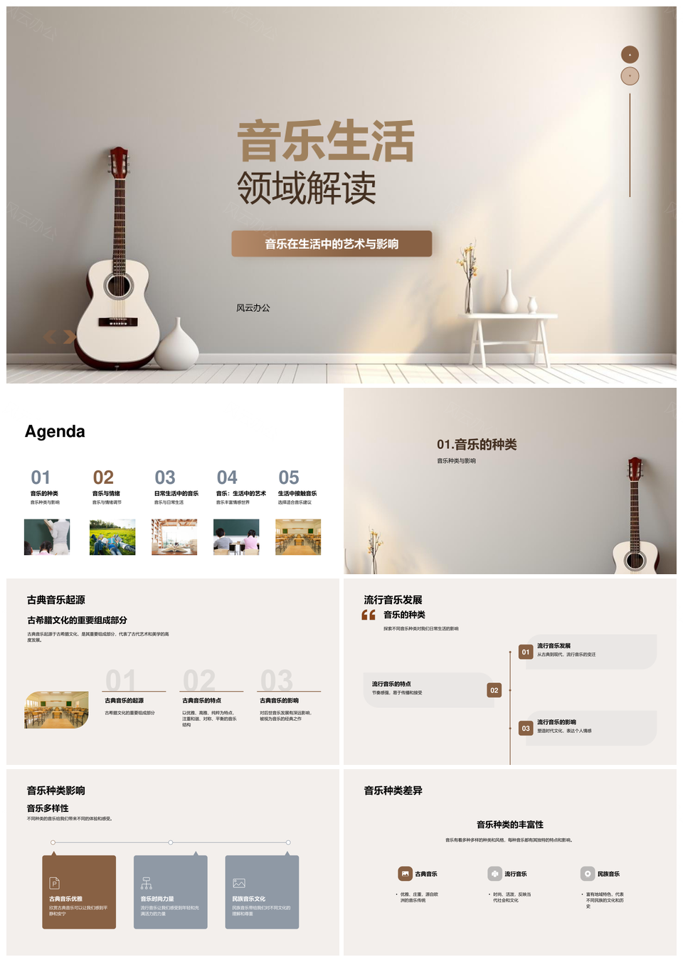 风云办公提供的音乐教育专家解读生活音乐符号领域PPT模板,下载格式为pptx,一共27页,作品中文字及图均可以修改和编辑,图片更改请在作品中右键图片并更换,文字修改请直接点击文字进行修改。